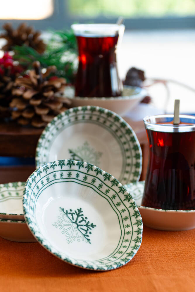 - 6 adet çay tabağından oluşan set, misafirlerinize şık ve zarif bir sunum imkanı sağlar.; - TR menşei ile üretilmiş olup, yerli üretim kalitesini sofralarınıza taşır.; - Porselen materyali sayesinde uzun ömürlü kullanım ve kolay temizlik avantajı sunar.; - Yuvarlak şekliyle klasik ve zamansız bir tasarım, her türlü çay ve kahve servisi için idealdir.