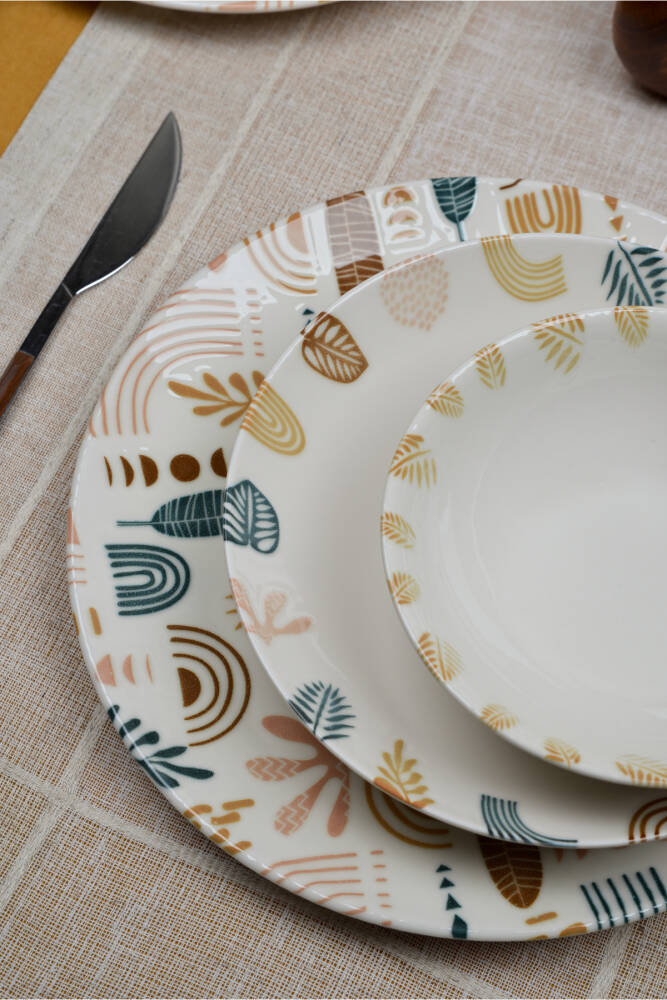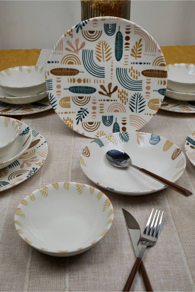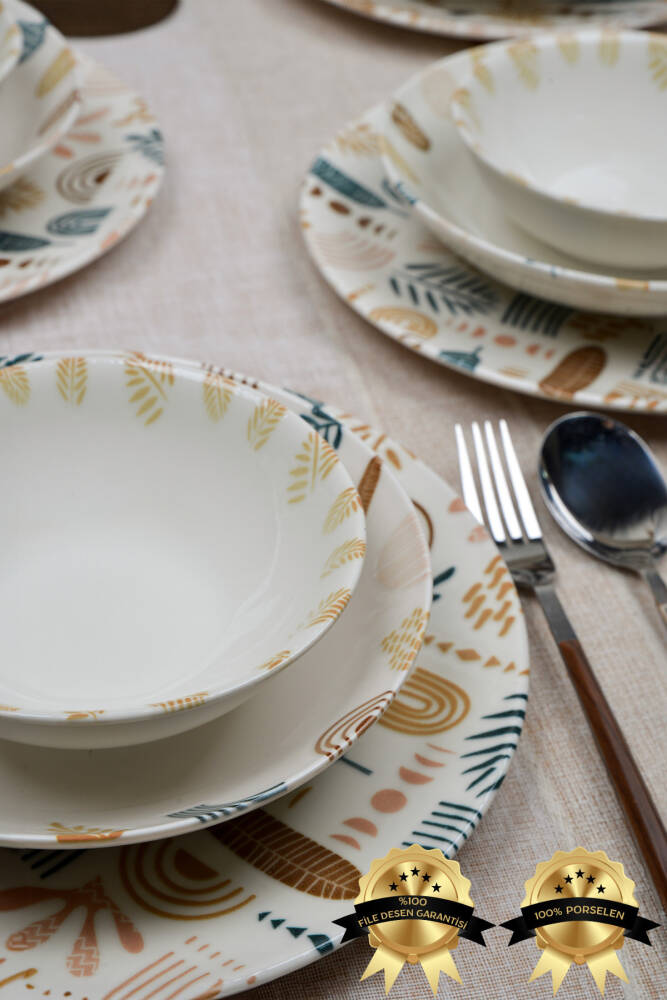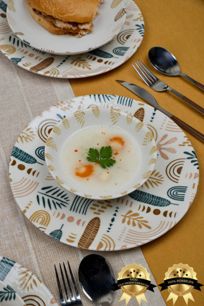 - Bulaşık makinesinde kolayca temizlenebilir yapısıyla pratik kullanım sunar.; - Uzun süreli dayanıklılık ve estetik görünüm için yüksek kaliteli porselen malzemeden üretilmiştir.; - Modern tasarımı ile sofralarınıza şık bir dokunuş katar.; - 6 kişilik geniş kapasitesiyle aile yemeklerinizden özel davetlere kadar her türlü etkinlikte idealdir