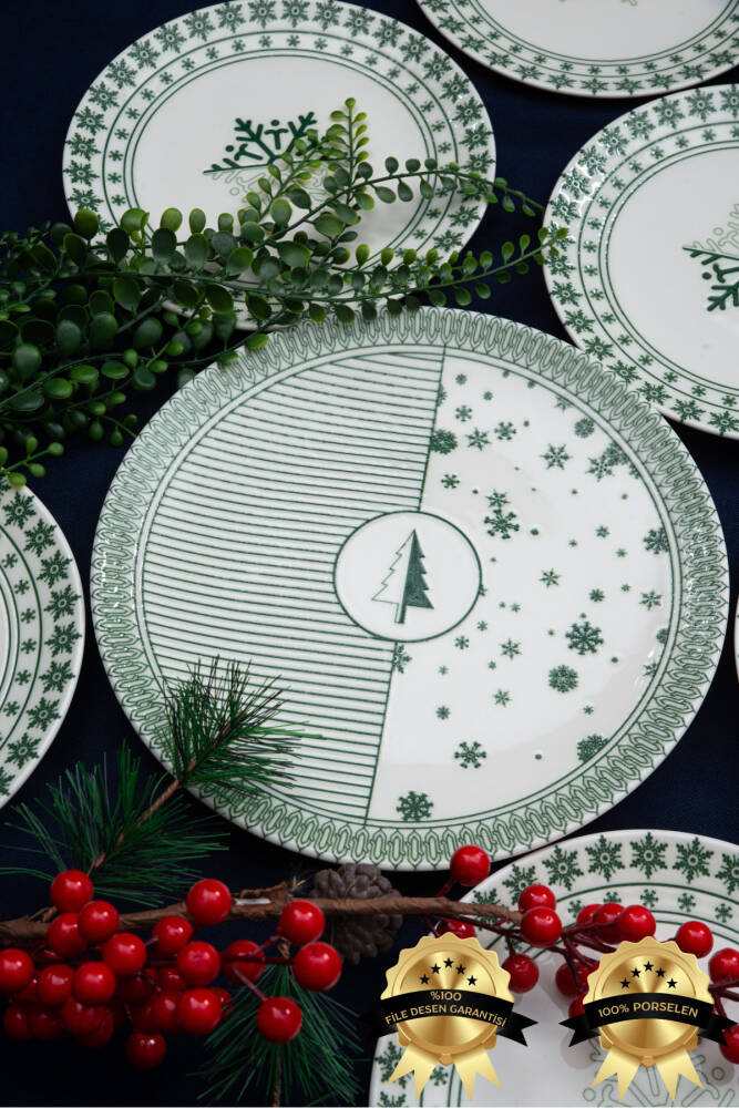 Çam Ağacı 7 Parça Porselen Pasta Tabağı Seti