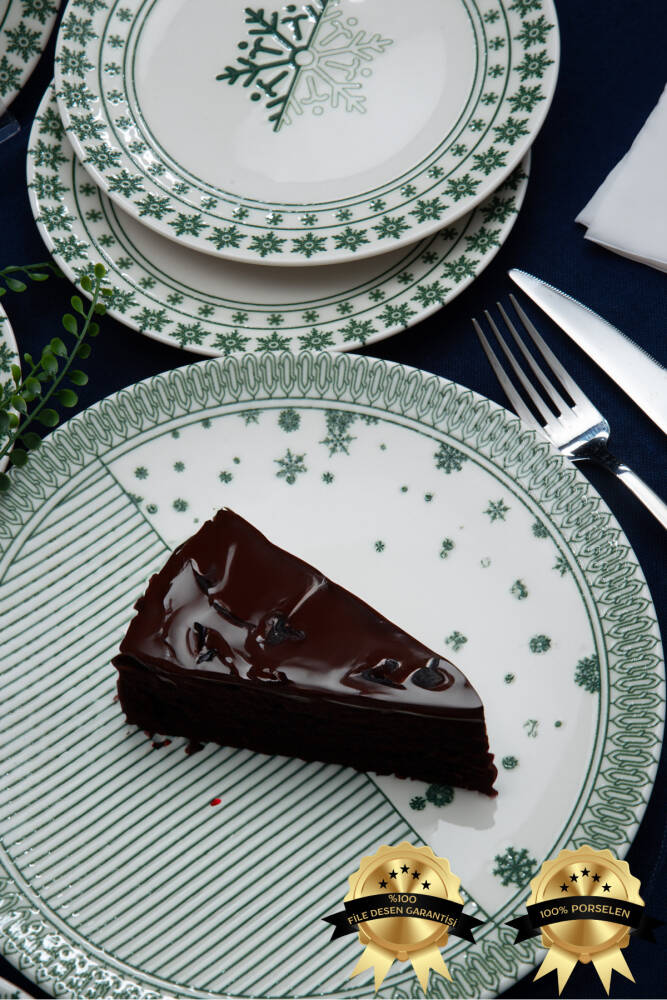 6lı Zümrüt 18 cm Porselen Pasta ve Tatlı Tabağı Seti - Zarif ve Modern Tasarım