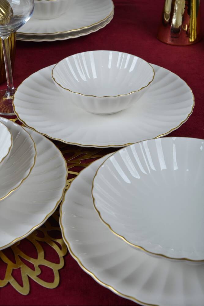 Sedef 18 Parça 6 Kişilik Altın Yaldızlı Porselen Yemek Takımı