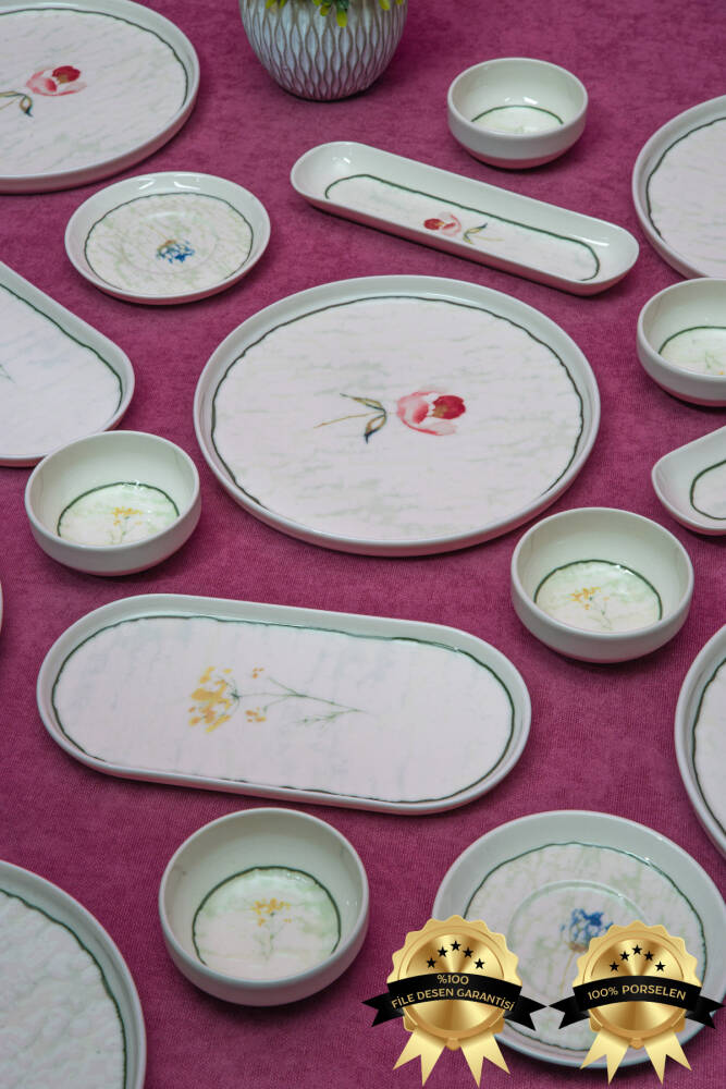 Ebrusu 16 Parça 6 Kişilik Porselen Kahvaltı Takımı