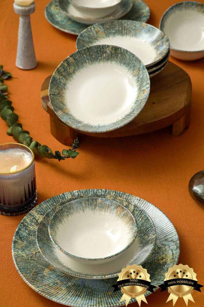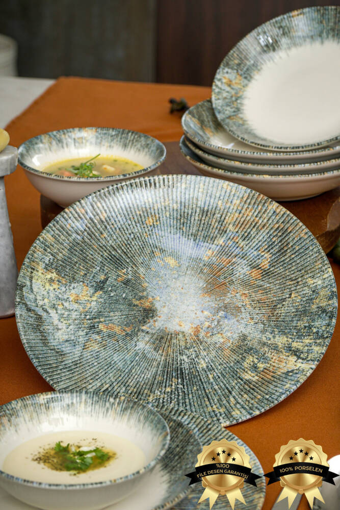 Modern ve minimalist tasarımıyla öne çıkan Eksen Porselen Yemek Takımı, 6 kişilik geniş kapasitesiyle her yemeği şıklıkla sunar. ; Yüksek kaliteli porselen yapısı, uzun süreli kullanım ve estetik görünüm sağlar. ; Porselen Rengi : Kırık Beyaz ; 6 Adet 25 cm Servis Tabağı ; 6 Adet 19 cm Çukur Tabak ; 6 Adet 14 cm Kase ; Siparişleriniz, strafor ve özel kutular kullanılarak özenle paketlenip gönderilmektedir. ;