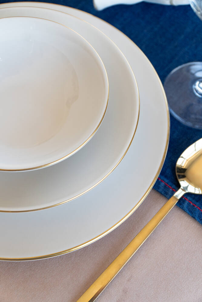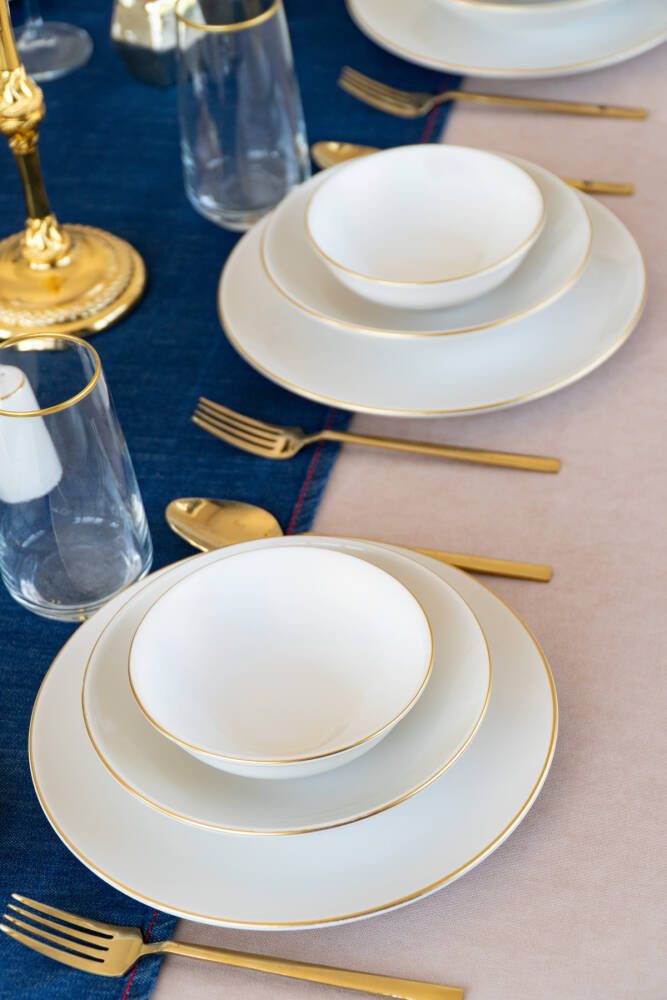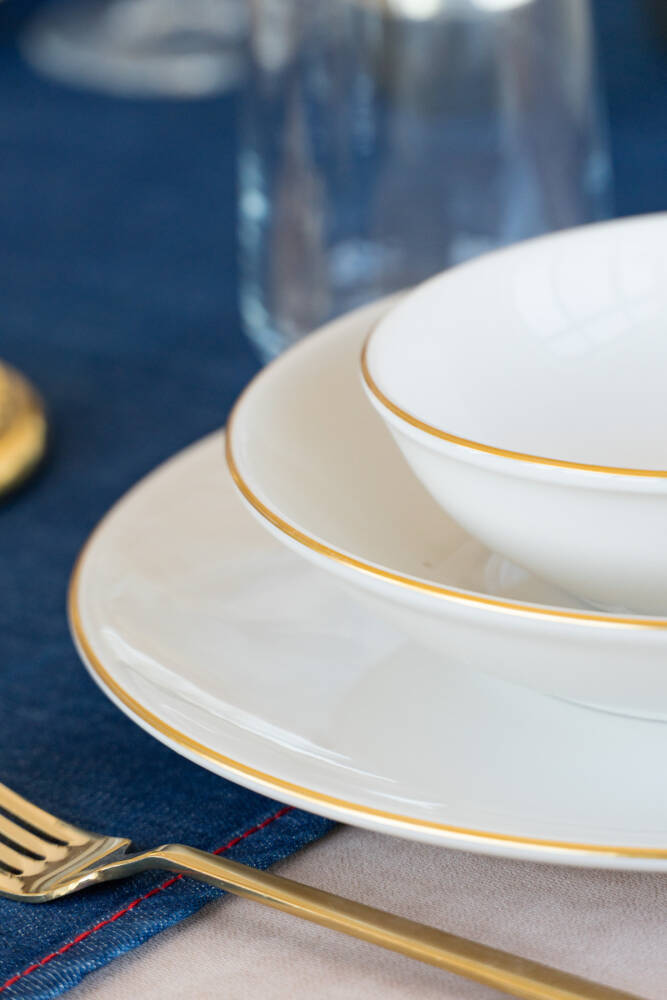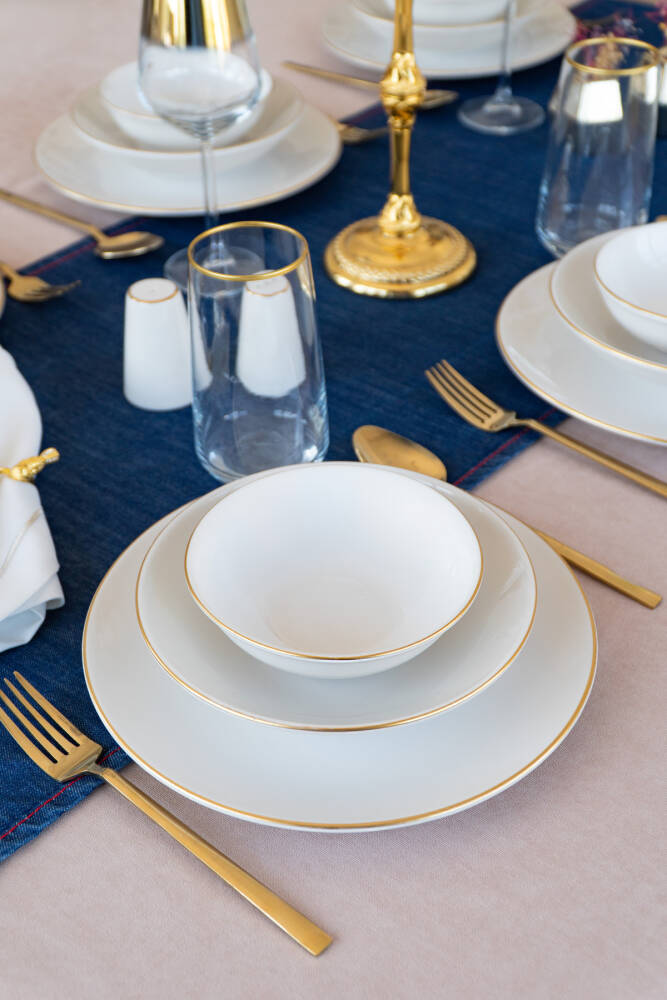 Altın yaldız ile işlenmiş zarif detaylara sahip olan Hayal Porselen Yemek Takımı, kırık beyaz rengiyle her sofraya asalet katar. ; Bu 6 kişilik set, özel günlerinizde ve günlük kullanımda estetik bir dokunuş sunar. ; Porselen Rengi : Kırık Beyaz ; 6 Adet 25 cm Servis Tabağı ; 6 Adet 19 cm Çukur Tabak ; 6 Adet 14 cm Kase ; Siparişleriniz, strafor ve özel kutular kullanılarak özenle paketlenip gönderilmektedir. ;