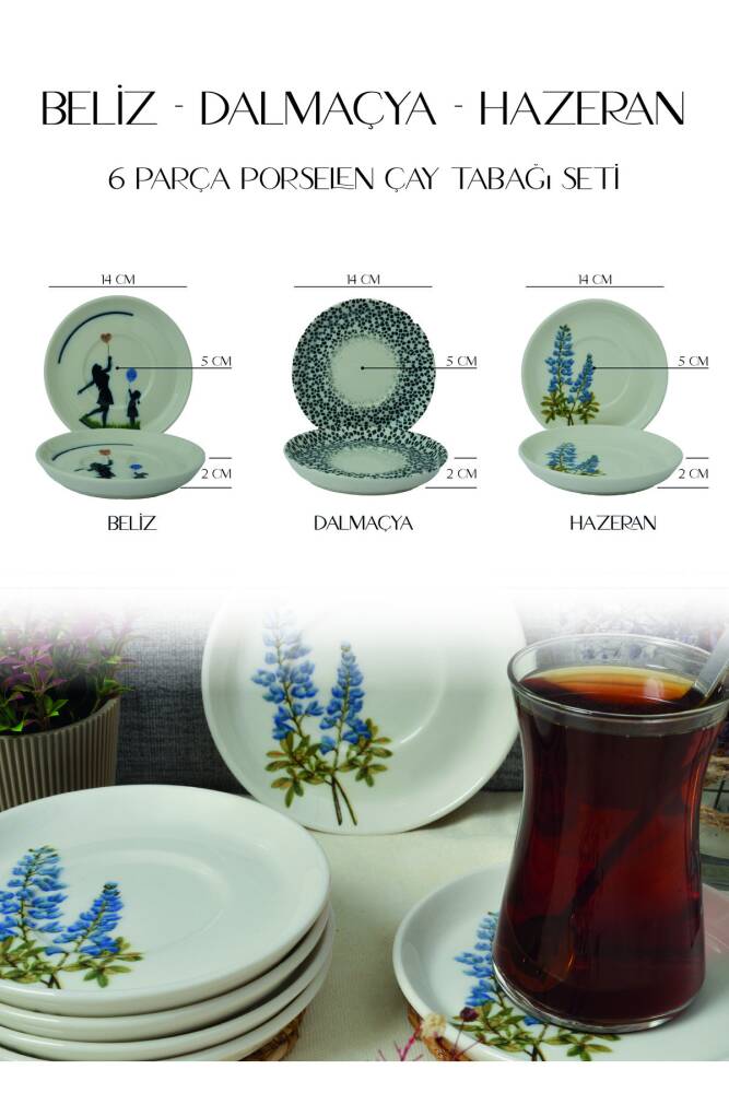 - Zarif tasarımıyla dikkat çeken Hazeran 6'lı Porselen Çay Tabağı Seti, her türlü çay keyfinizi şıklıkla tamamlar.; - Yüksek kaliteli porselen malzemesinden üretilmiş olup, uzun ömürlü kullanım sunar.; - Türkiye'de üretilen bu set, yerel el işçiliğinin güzelliklerini evinize taşır.; - Altı adet tabağı ile misafirlerinizle paylaşabileceğiniz veya kişisel kullanımınız için idealdir.; - Günün en sevilen zamanı olan çay saatinde size ergonomik tasarımı ve şık görünümü ile keyifle eşlik eder.