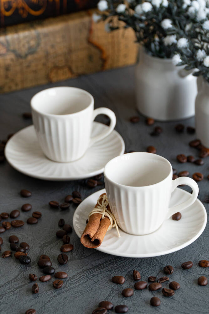 - İki kişilik özel tasarımıyla, samimi kahve sohbetleriniz için ideal bir seçim.; - Her bir fincan 100 ml hacmiyle, keyifli içecek deneyiminizi tamamlar.; - Modern stil sahibi tasarımı ile mutfak dekorunuza şık bir dokunuş ekler.; - Yüksek kaliteli porselen malzemesi sayesinde uzun ömürlü kullanım sunar.; - Kişiye özel 4 parça set halinde gelir; hem kendinize hem de sevdiklerinize unutulmaz anlar yaşatır.