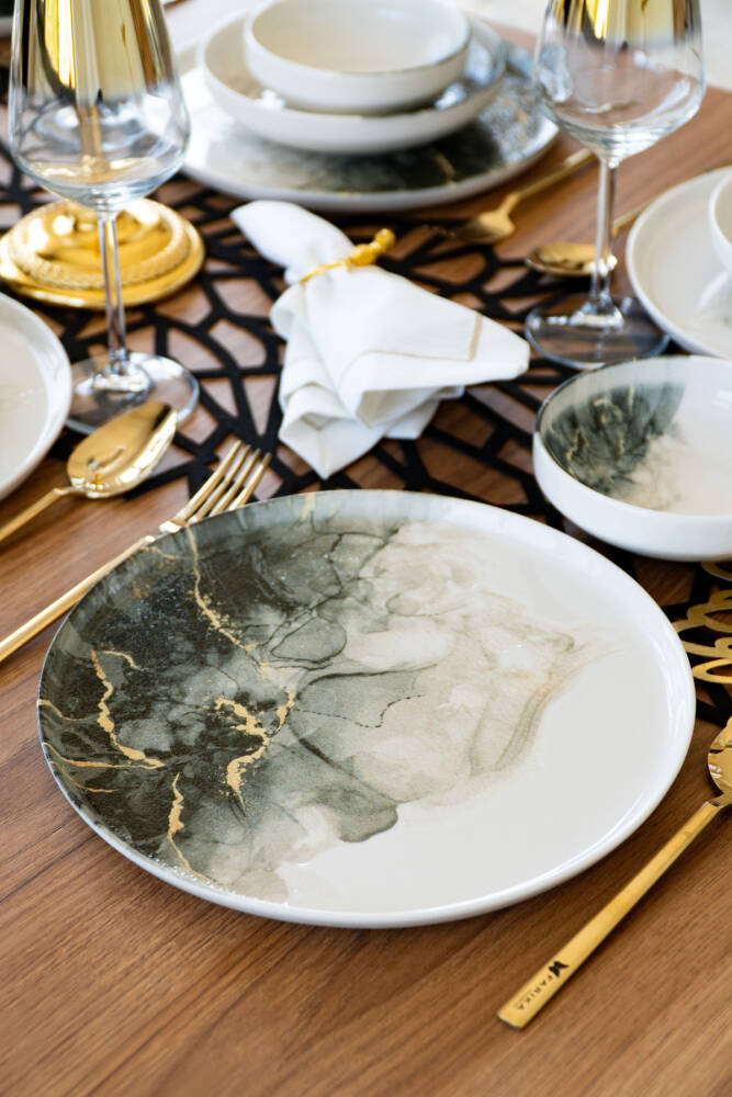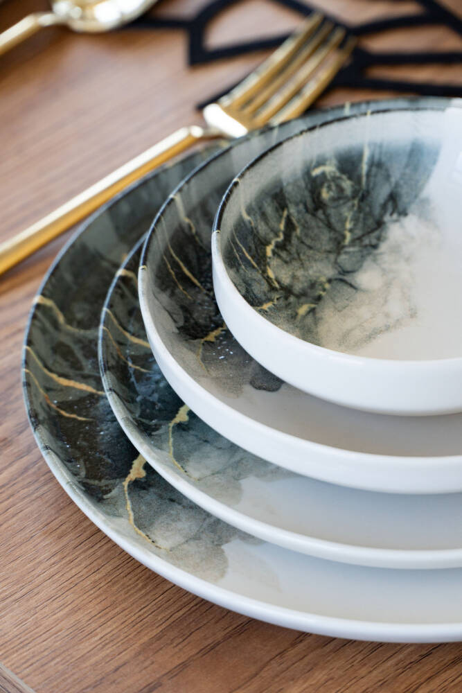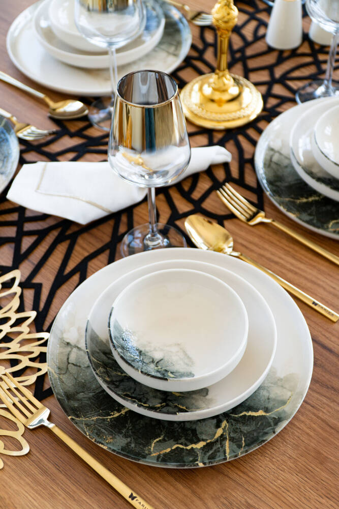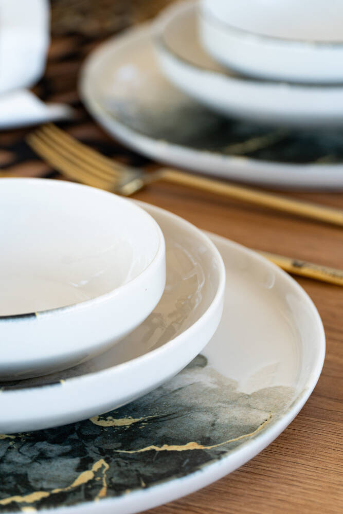 - 6 kişilik ailelerin ihtiyaçlarına uygun, modern tasarımıyla dikkat çeken MERMER 18 Parça Yemek Takımı.; - Yüksek kaliteli porselen malzemesi sayesinde uzun ömürlü kullanım sunar ve dayanıklılığı ile ön plana çıkar.; - Yuvarlak şekliyle klasik ve zamansız bir görünüm sergileyen bu takım, her türlü sofra düzenine kolayca uyum sağlar.; - Toplamda 18 parça içeren set; her türlü yemek ve tatlı servisi için idealdir; misafirlerinizle keyifli anlar yaşamanızı sağlar.; - BPA içermeyen yapısıyla sağlığınızı düşünerek üretilmiştir; güvenle kullanabilirsiniz.; - Türkiye'de üretilmiş olup yerel kaynakların değerlendirilmesini teşvik ederken aynı zamanda uluslararası standartlara da uygundur.