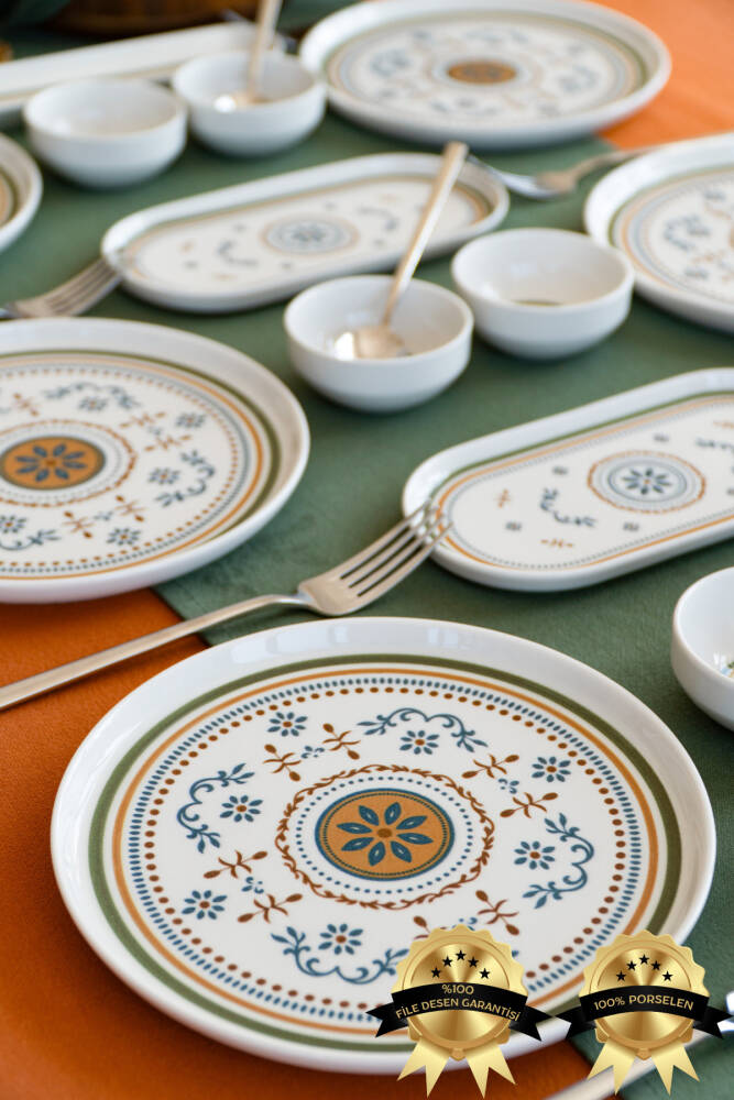 - 6 kişilik geniş kapasiteye sahip, herkesin rahatlıkla kullanabileceği porselen kahvaltı takımı.; - BPA içermeyen malzeme kullanımı ile sağlığınızı düşünerek tasarlanmıştır.; - Modern stil ve şık görünümüyle mutfak dekorasyonunuza estetik bir dokunuş ekler.; - Yerli üretim olup, Türk malı olarak gururla sunulmaktadır.; - Yuvarlak formu sayesinde kolayca yerleştirilebilir ve temizlenmesi pratiktir.; - Toplamda 16 parçadan oluşan set; zengin çeşitlilikte kahvaltılık seçenekleri sunar.; Ürünümüz 6 parça 21 cm Servis, 6 parça 08 cm Reçellik, 2 adet 21 cm Kayık, 2 adet 20 cm Zeytinlik'ten oluşmaktadır.;