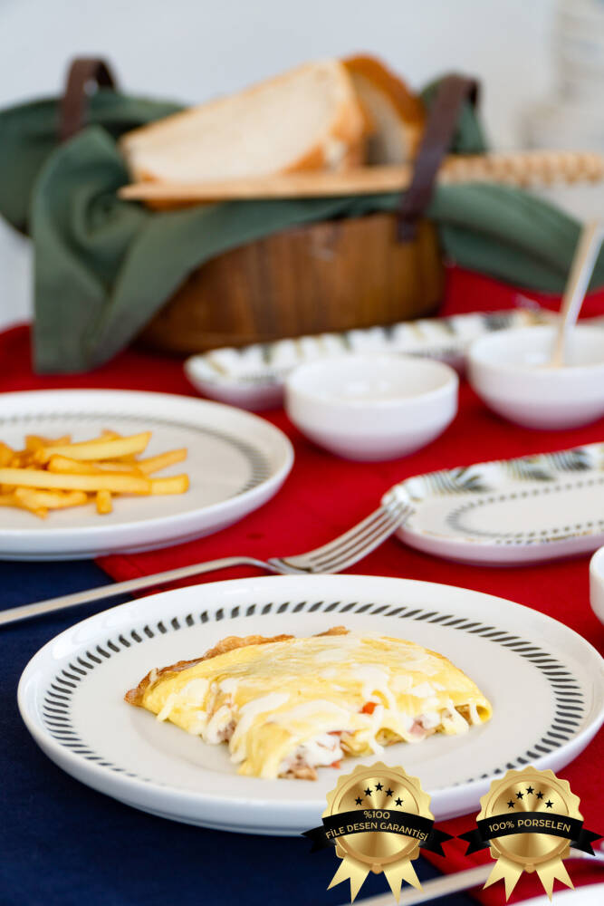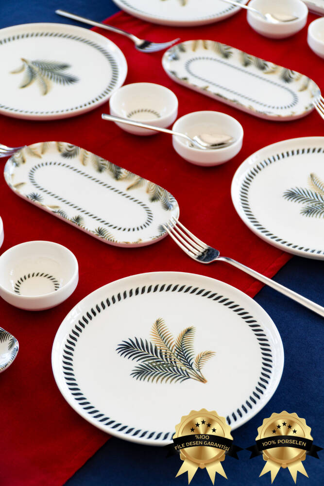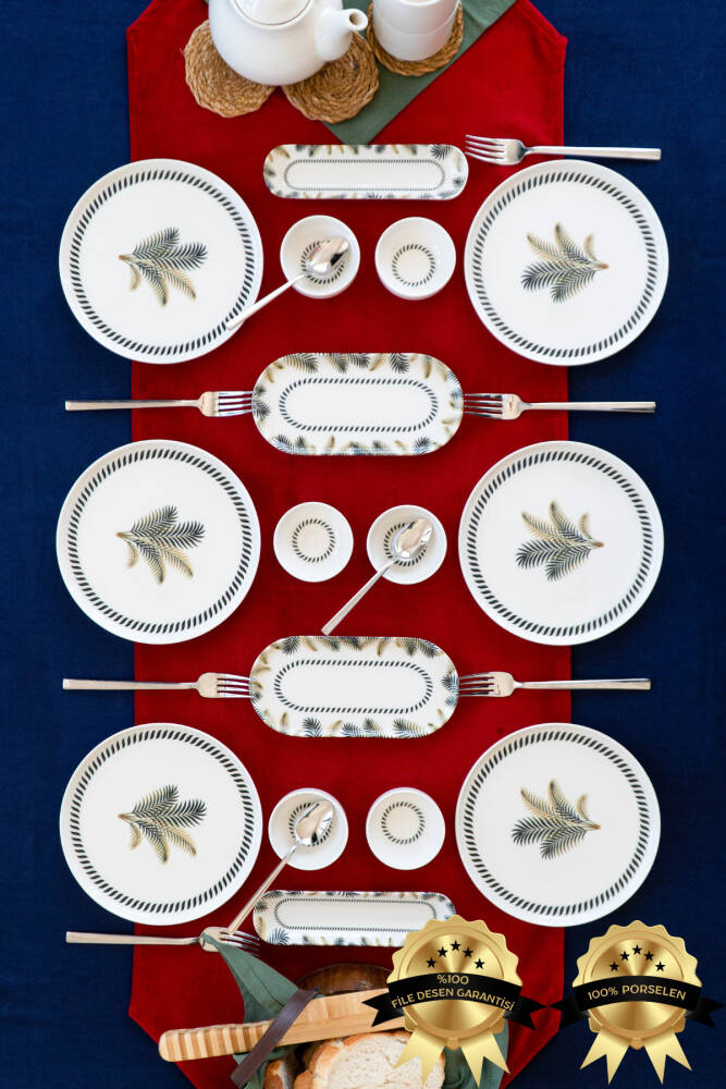 - 6 kişilik geniş kapasiteye sahip, herkesin rahatlıkla kullanabileceği kahvaltı takımı.; - Yüksek kaliteli porselen malzemesi ile uzun ömürlü kullanım sunar.; - BPA içermeyen yapısıyla sağlığınızı düşünerek tasarlanmıştır.; - Modern tasarımıyla mutfak dekorasyonunuza şık bir dokunuş ekler.; - Üretiminde yerli kaynaklardan faydalanarak Türk malı gururunu yaşatır.; - Yuvarlak şekliyle klasik ve zamansız bir görünüm sergiler.; - Toplamda 16 parçadan oluşan set, ihtiyacınız olan her şeyi tek pakette toplar.; Ürünümüz 6 parça 21 cm Servis, 6 parça 08 cm Reçellik, 2 adet 21 cm Kayık, 2 adet 20 cm Zeytinlik'ten oluşmaktadır.