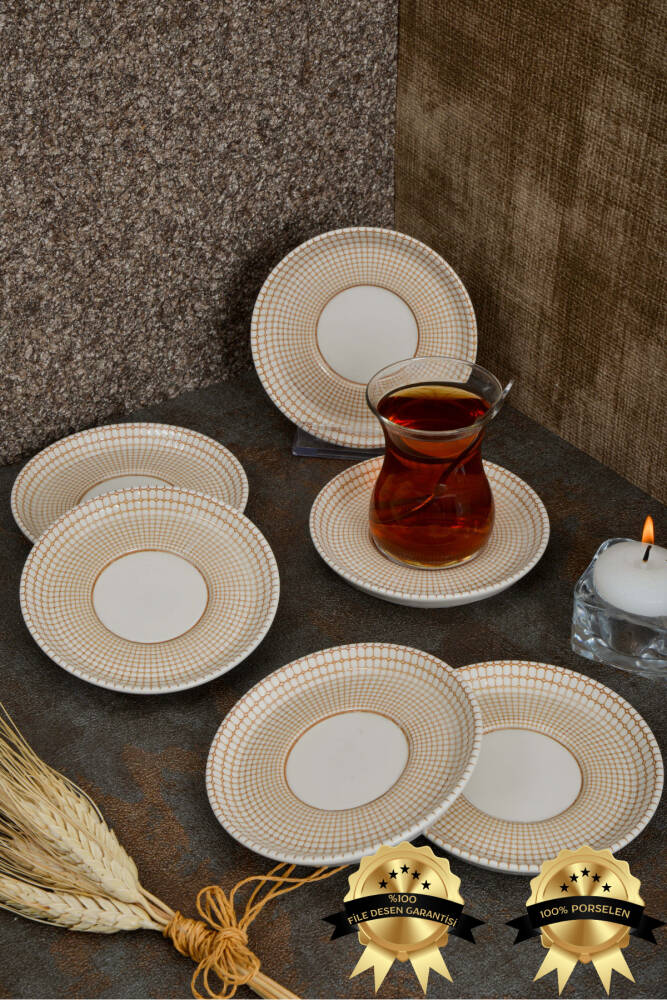 - Modern tasarımıyla dikkat çeken Petek 6'lı Porselen Çay Tabağı Seti, şıklığı ve zarafeti masanıza taşır.; - Her bir parça 10 cm çapında olup, klasik yuvarlak formuyla geleneksel çay keyfinizi yeniden tanımlar.; - Yüksek kaliteli porselen malzemesi sayesinde uzun ömürlü kullanım sunar ve dayanıklılık açısından güven verir.; - BPA içermeyen yapısı ile sağlığınızı düşünerek üretilmiştir; kimyasallardan arındırılmış içeriğiyle her zaman yanınızda.; - 6 parçadan oluşan set, misafirlerinizle paylaşabileceğiniz veya kişisel kullanım için idealdir; her türlü çay ritüeline uyum sağlar.