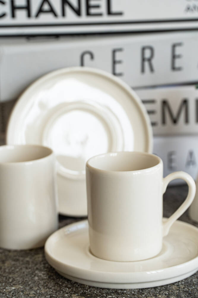 - Modern tasarımıyla dikkat çeken Rüya 4 Parça 2 Kişilik Porselen Kahve Fincan Takımı, şıklığı ve zarafeti sofralarınıza taşır.; - Beyaz rengiyle sade ve estetik bir görünüm sunan bu takım, her türlü mutfak dekorasyonuyla uyum sağlar.; - Her bir fincan 100 ml hacme sahip olup, ideal kahve keyfi için yeterli miktarda içeceğinizi rahatça içebilirsiniz.; - 4 parçadan oluşan set, iki kişilik kahve keyfinizi tamamlamak için idealdir; böylece sevdiklerinizle birlikte özel anların tadını çıkarabilirsiniz.; - Yüksek kaliteli porselen malzemesi sayesinde dayanıklılık ve uzun ömürlü kullanım vaat eder.; - Türkiye menşeli olan bu ürün, yerel üretimin kalitesini ve işçiliğini sofralarınıza getirir.