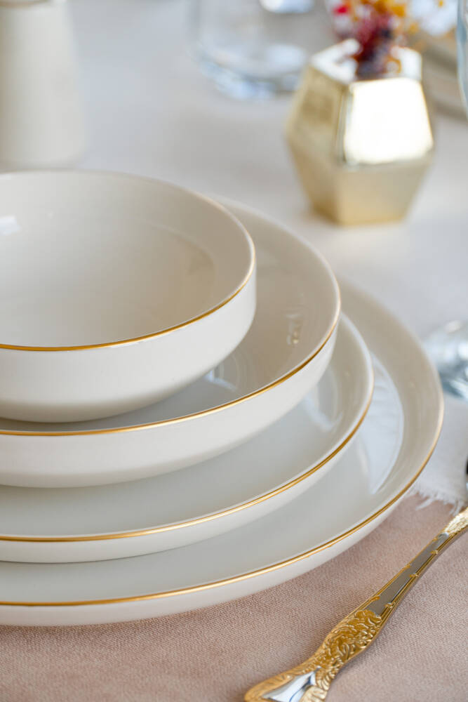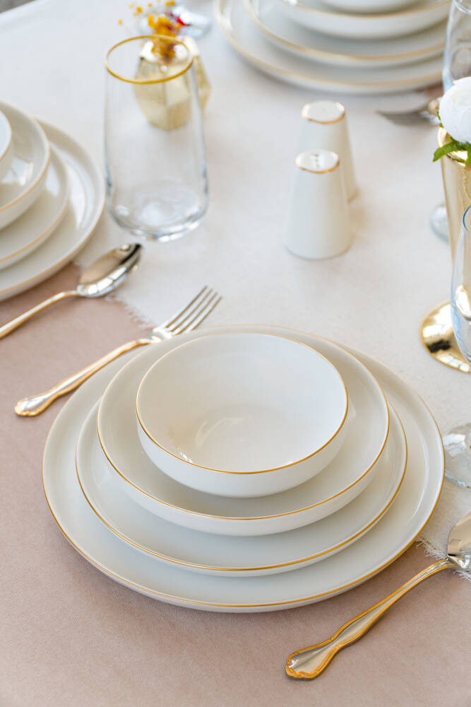 - Altı kişilik ailelerin ihtiyaçlarına uygun, modern tasarımıyla dikkat çeken Rüya Altın Yaldız 24 parça porselen yemek takımı.; - Her bir parçasında zarif altın yaldız detaylarıyla süslenmiş, göz alıcı bir görünüm sunar.; - Yuvarlak şekliyle klasik ve zamansız bir estetik sergileyen bu set, sofralarınıza şıklık katmak için idealdir.; - Toplamda 24 parçadan oluşan bu geniş koleksiyon; her türlü yemek daveti veya özel gün kutlaması için tam bir çözüm sunar.; - Elde yıkama kolaylığı sayesinde pratik kullanım imkanı sağlar; böylece yemek takımı bakımınızı zahmetsizce yapabilirsiniz