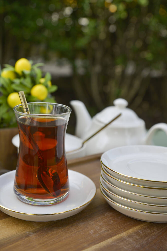 - 6 adet 12 cm çapında, kırık beyaz renkte porselen çay tabağı seti, modern ve şık bir sofra düzeni sunar.; - Yaldızlı altın detaylarıyla göz alıcı bir görünüm kazanan bu tabaklar, her türlü çay servisine zarif bir dokunuş ekler.; - Mikrodalgada güvenle kullanılabilecek yapısıyla pratiklik ve konfor sağlar; ısıtılmış içeceklerinizi doğrudan tabaklarınızda tadını çıkarabilirsiniz.; - Yuvarlak şekliyle klasik ve zamansız bir tasarım sunan bu çay tabakları, her türlü sofra düzenine kolayca uyum sağlar.; - Modern tema ve stil özellikleriyle günümüz mutfak dekorasyonuna mükemmel uyum sağlar; evinizin veya iş yerinizin atmosferini zenginleştirir.; - Türkiye menşeli olmasıyla yerel üretim kalitesini sofralarınıza taşır; güvenilir ve dayanıklı bir kullanım vaat eder.; - Beyaz web rengi seçeneğiyle aydınlık ve ferah bir görünüm sunarken, kırık beyaz tonuyla zarif bir kontrast oluşturur.