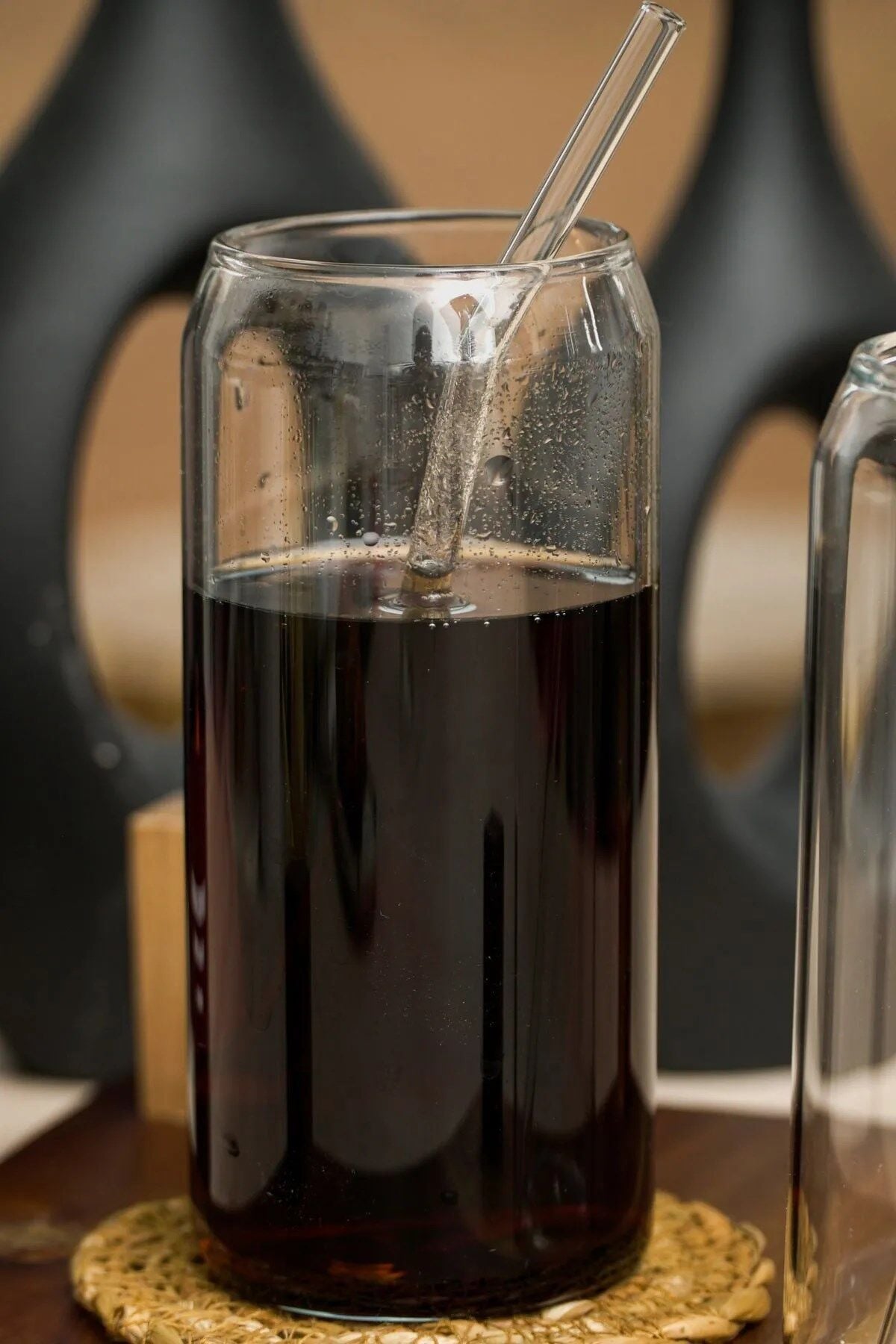 2'li 550 ml Pipetli Isıya Dayanıklı Cam Bardak - Kola Kutu Şekilli Kahve Sunum Bardağı