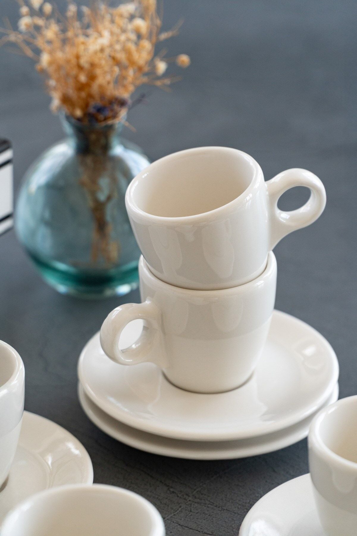 - Yüksek kaliteli porselen malzemesi ile üretilmiş, uzun ömürlü ve dayanıklı kullanım sunar.; - Modern tasarımıyla mutfak dekorasyonunuza şık bir dokunuş katar.; - 12 parça içeren set, birden fazla fincan ve tabaktan oluşan geniş bir kullanım imkanı sağlar.; - Her bir fincan 100 ml hacme sahiptir, ideal espresso servisi için uygundur.; - Türkiye'de üretilmiş olup, yerel işçilikle desteklenen bir üründür.;