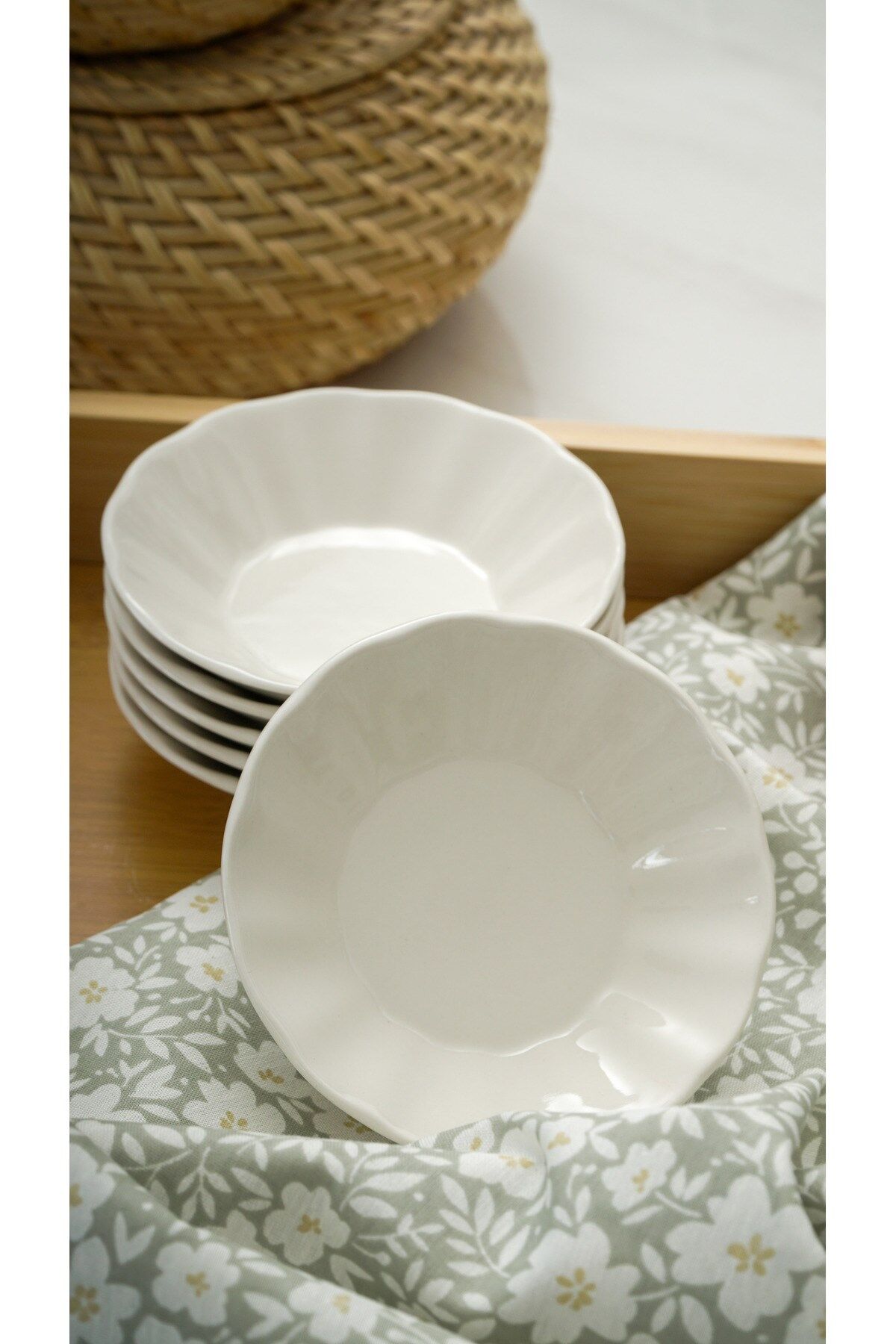 Acem Porselen Çay Tabağı 6'lı 11cm Kırık Beyaz
