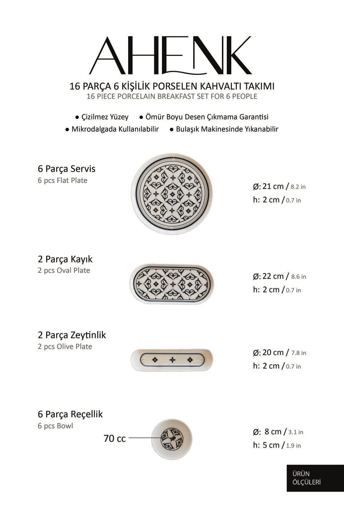 AHENK 6 Kişilik 16 Parça Kahvaltı Takımı
