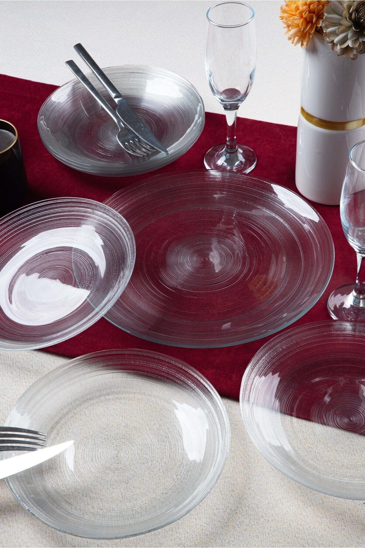 - Modern tasarımıyla her türlü sofra düzenine şıklık katar.; - Yuvarlak şekli sayesinde servis yapmayı kolaylaştırır ve estetik bir görünüm sunar.; - Yüksek kaliteli cam materyali ile dayanıklılık ve uzun ömürlü kullanım vaat eder.; - Beyaz rengi, her türlü masa örtüsü ve sofra takımıyla uyum sağlar.; - 7 parçadan oluşan set, pasta ve tatlılarınızı sunmak için idealdir.; - Cam malzemesi sayesinde kolay temizlenebilir ve hijyenik bir kullanım sunar.; - Türkiye menşeli olmasıyla yerel üretim desteği sağlar.;
