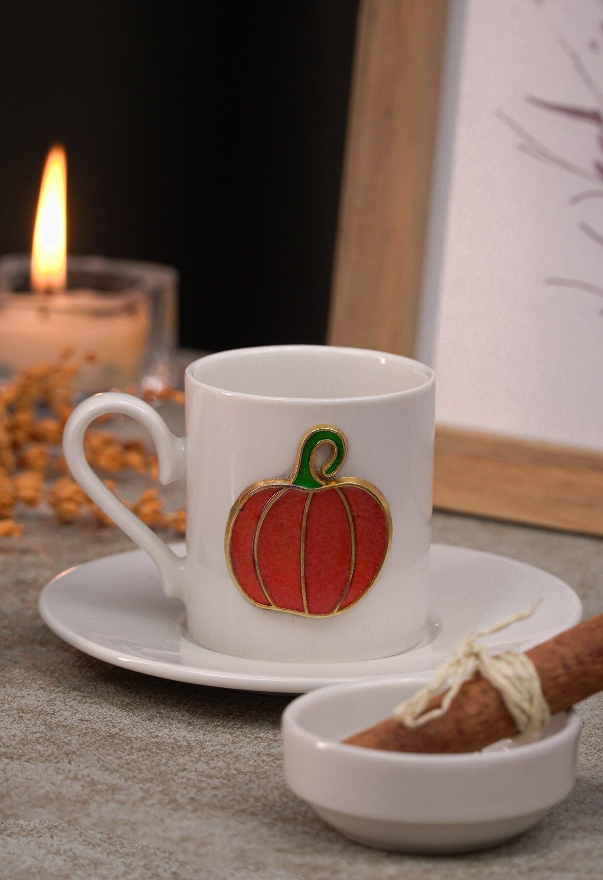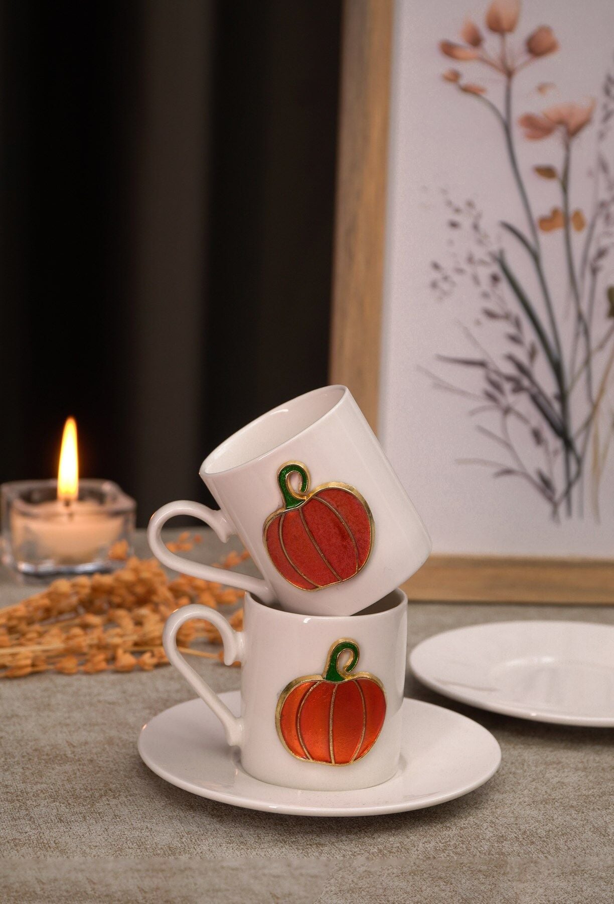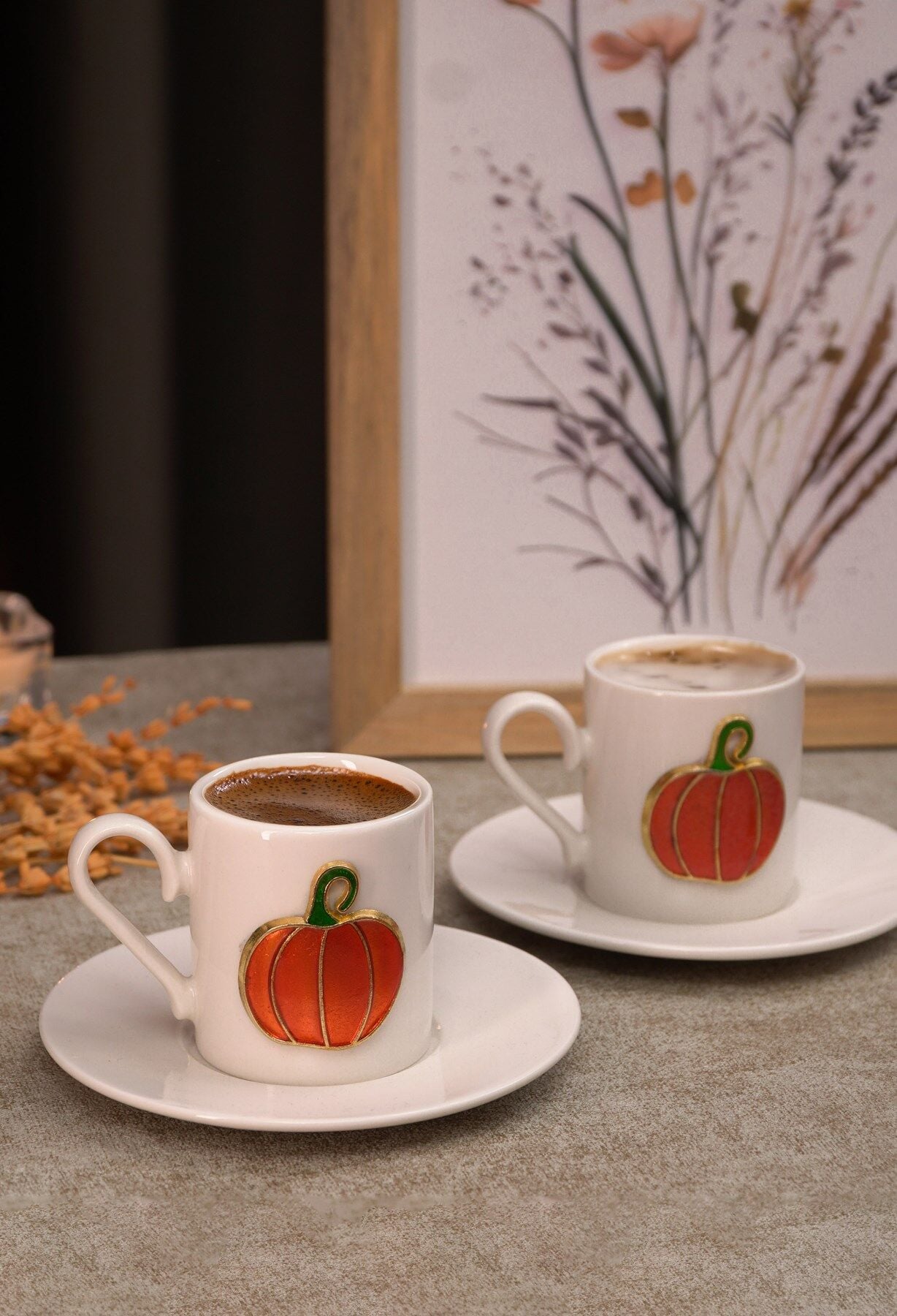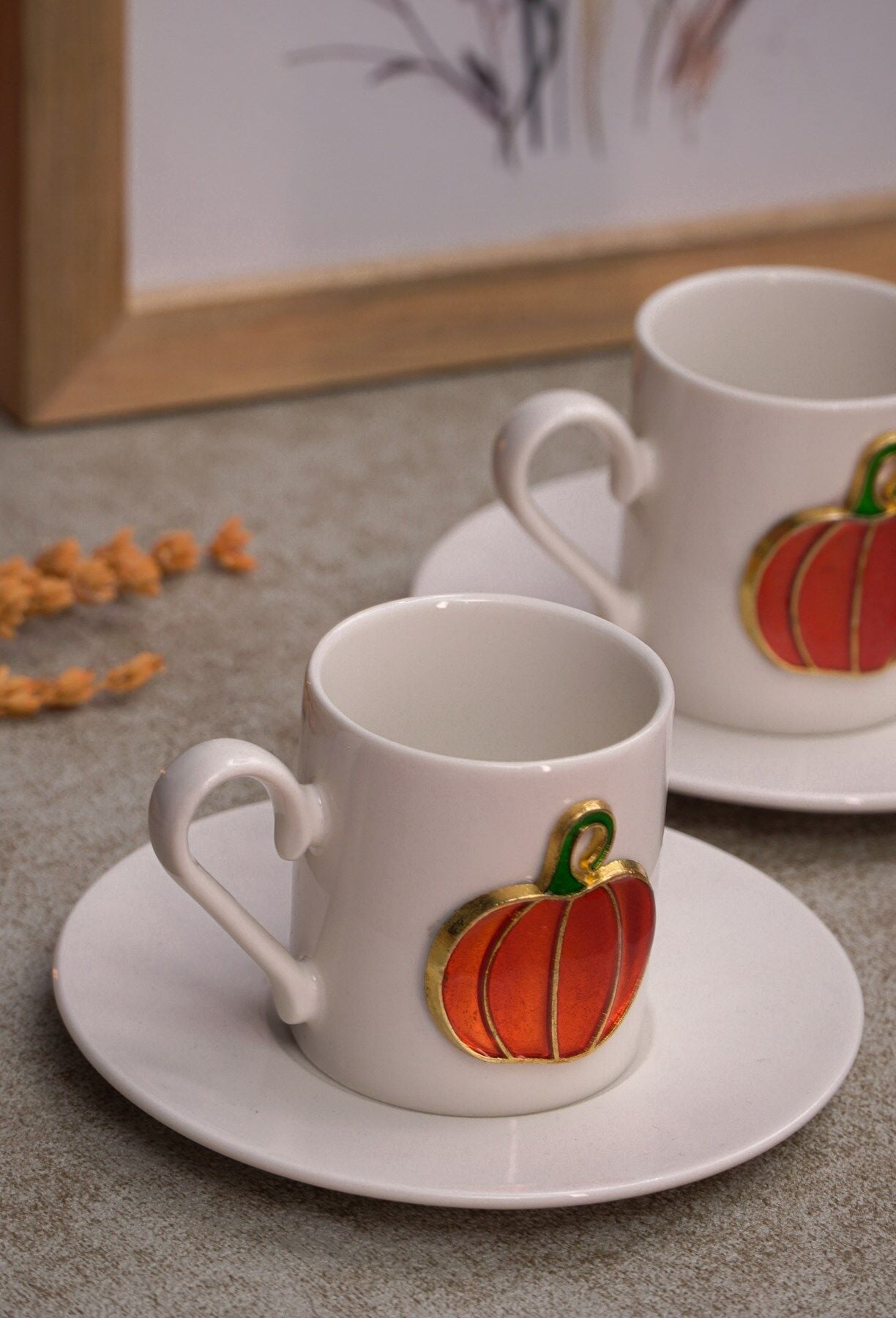 Balkabağı Kabartmalı 4 Parça 2 Kişilik Kahve Fincan Seti