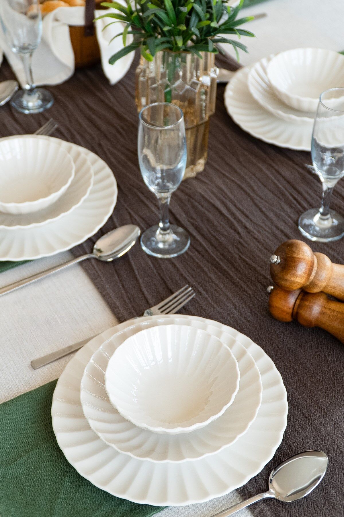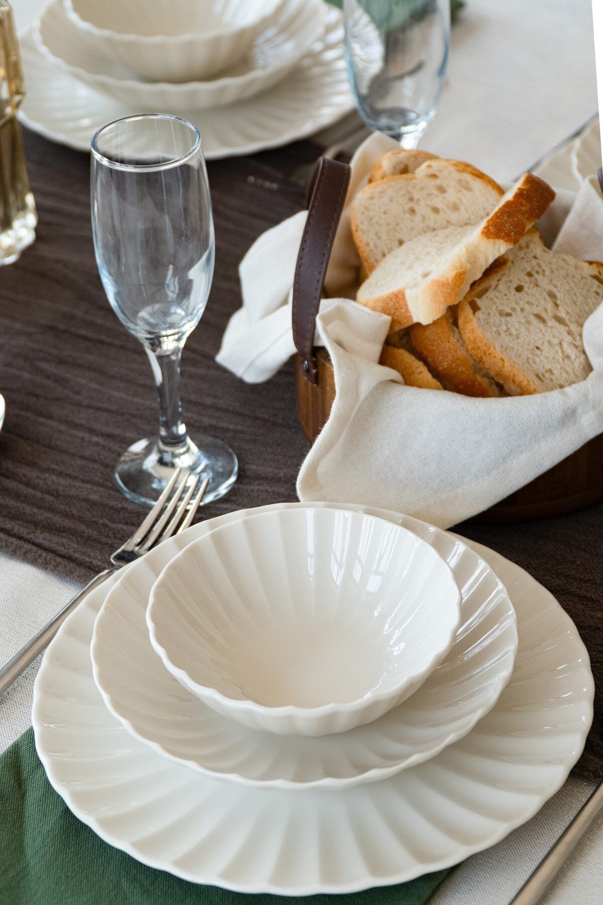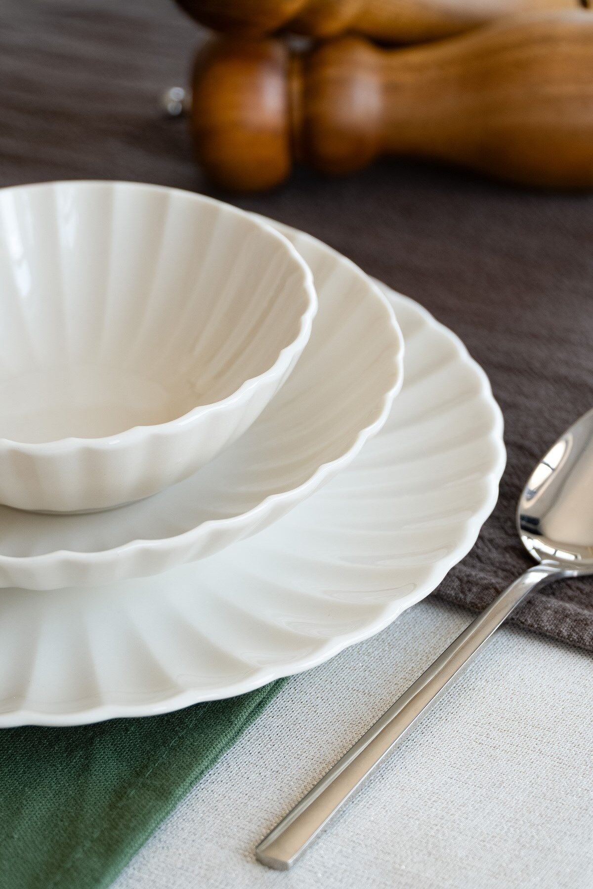 - 18 parçadan oluşan geniş set, 6 kişilik sofralarınız için idealdir.; - Yüksek kaliteli porselen materyali ile uzun ömürlü kullanım sunar.; - Yuvarlak tasarımı sayesinde modern ve şık bir görünüm kazandırır.; - Elde yıkanabilir özelliği ile kolay temizlik sağlar ve hijyenik bir kullanım sunar.; - Türkiye menşeli olmasıyla yerel üretim kalitesini sofralarınıza taşır.; - Modern tema ve stil ile günümüzün trendlerine uygun bir estetik sergiler.; - Beyaz rengiyle zarif ve sade bir görünüm yaratır, her türlü masa düzenine uyum sağlar.