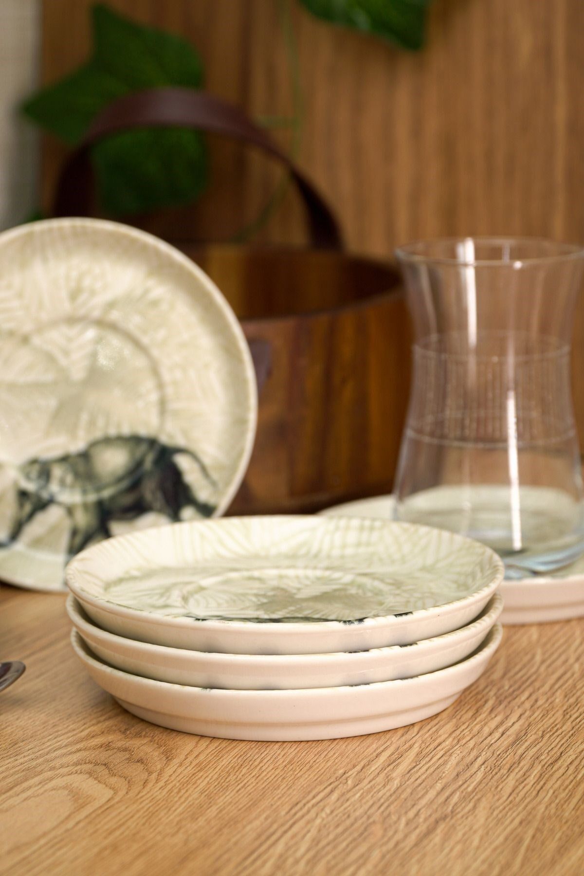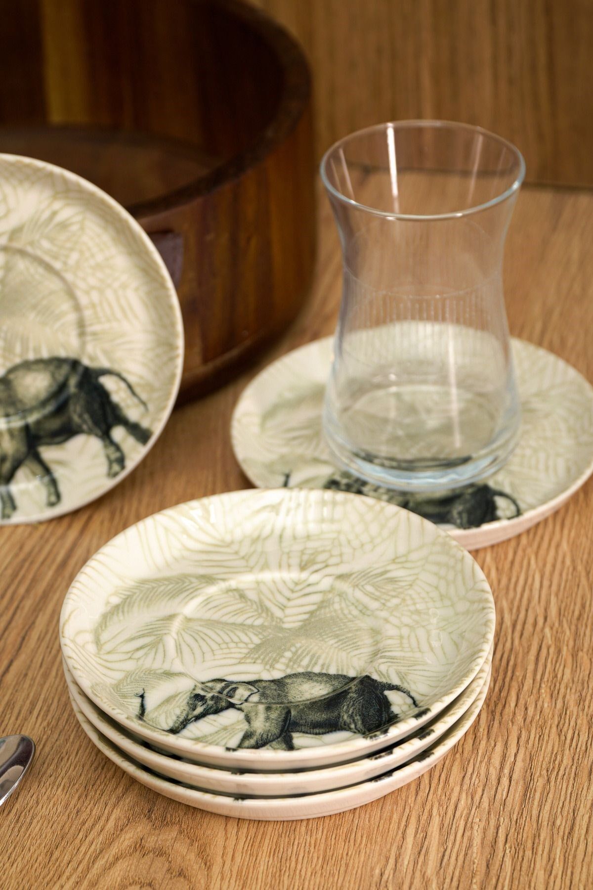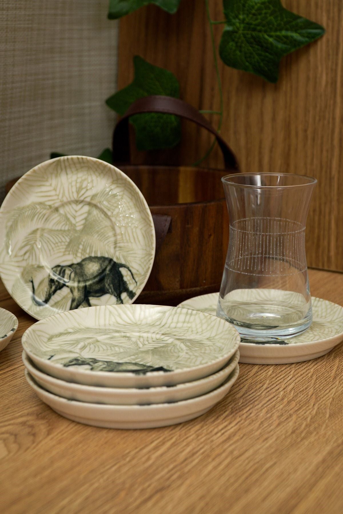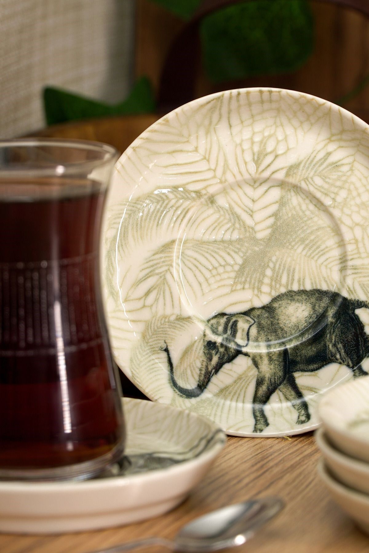 Fil desenleriyle süslenmiş bu zarif çay tabakları, her çay sunumuna şıklık katacak. Kırık beyaz rengi ve dayanıklı yapısıyla öne çıkan bu set, çay saatlerinizi daha özel kılacak. ; Porselen Rengi : Kırık Beyaz Bardak ; Oturtma çapı 6 cm ; 6 Adet 13 cm Çay Tabağı ;