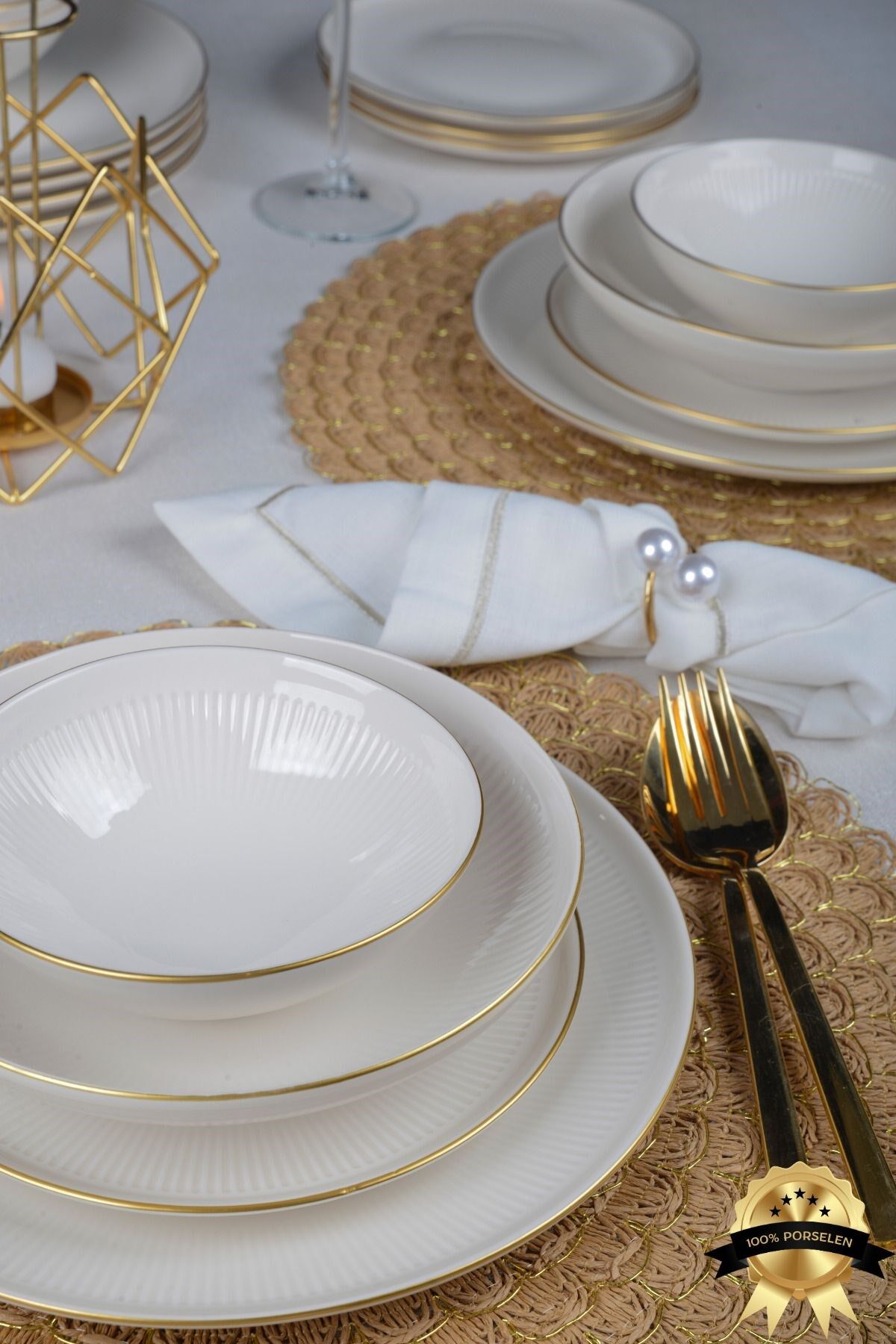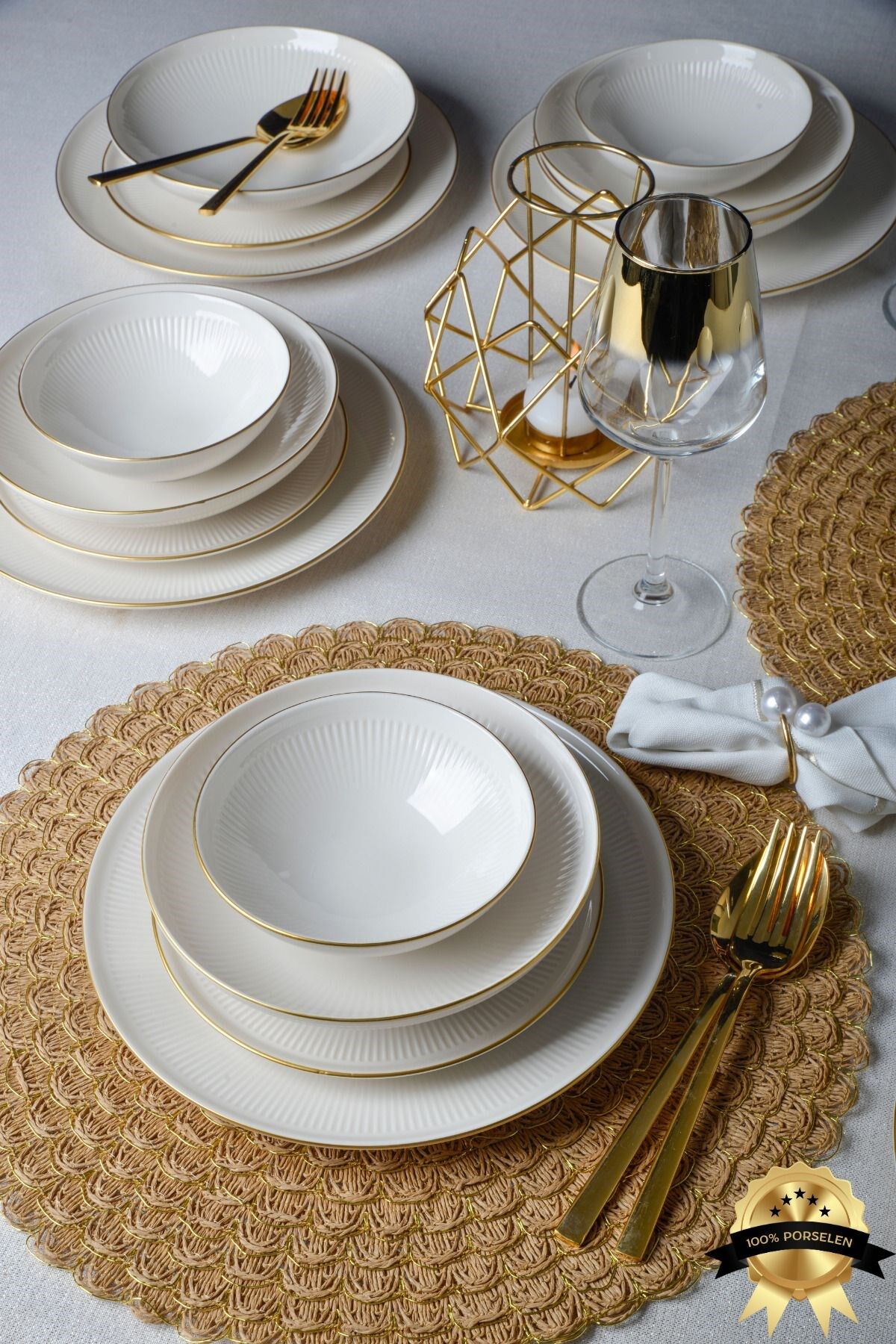 Düş 24 Parça 6 Kişilik Altın Yaldızlı Porselen Yemek Takımı