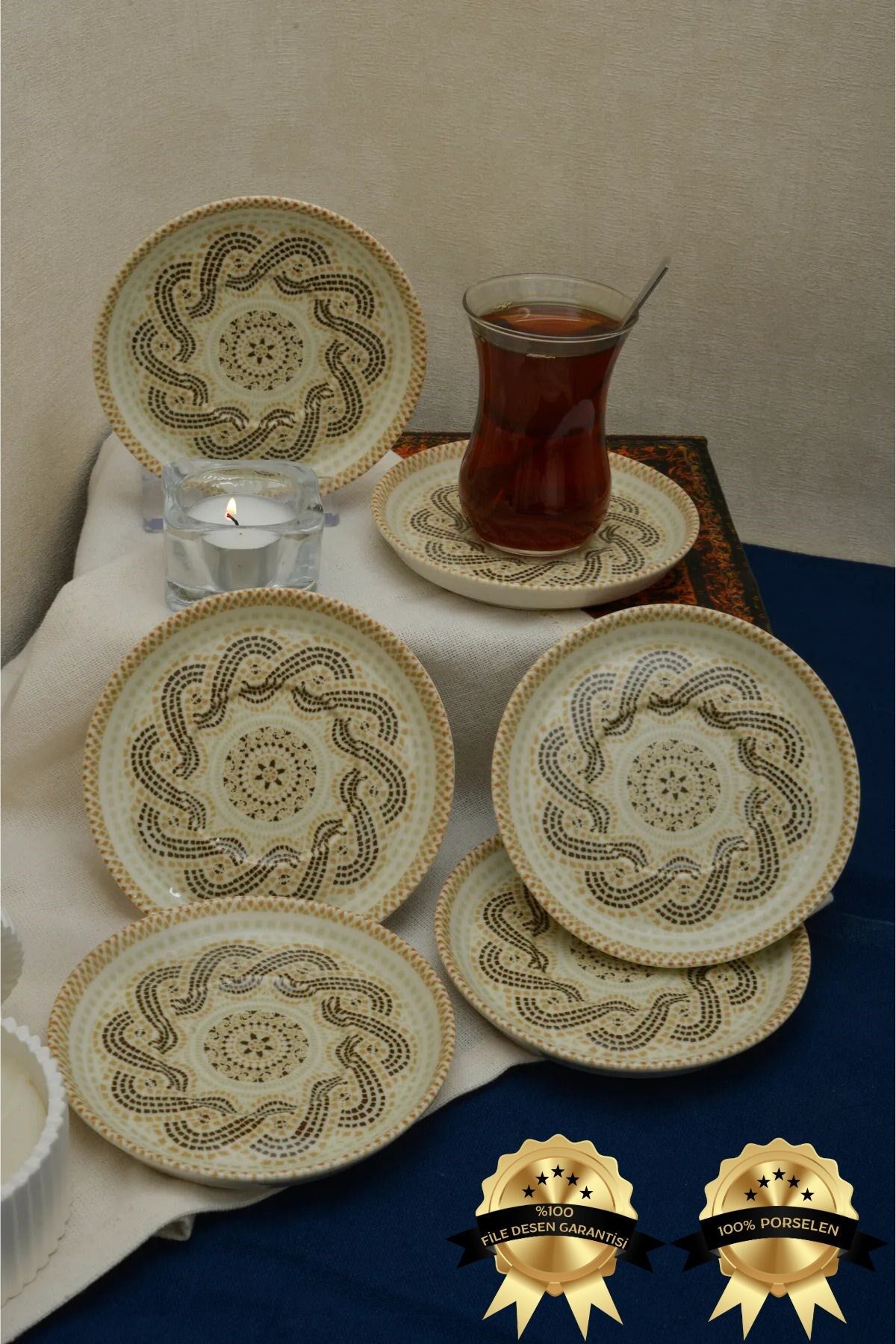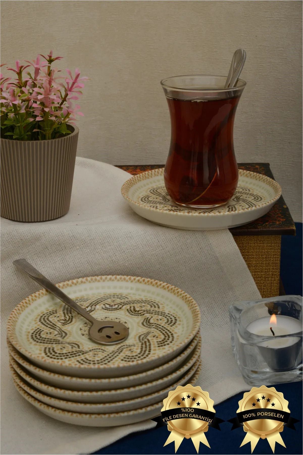 Efes 6 Adet 12cm Porselen Çay Tabağı Kırık Beyaz