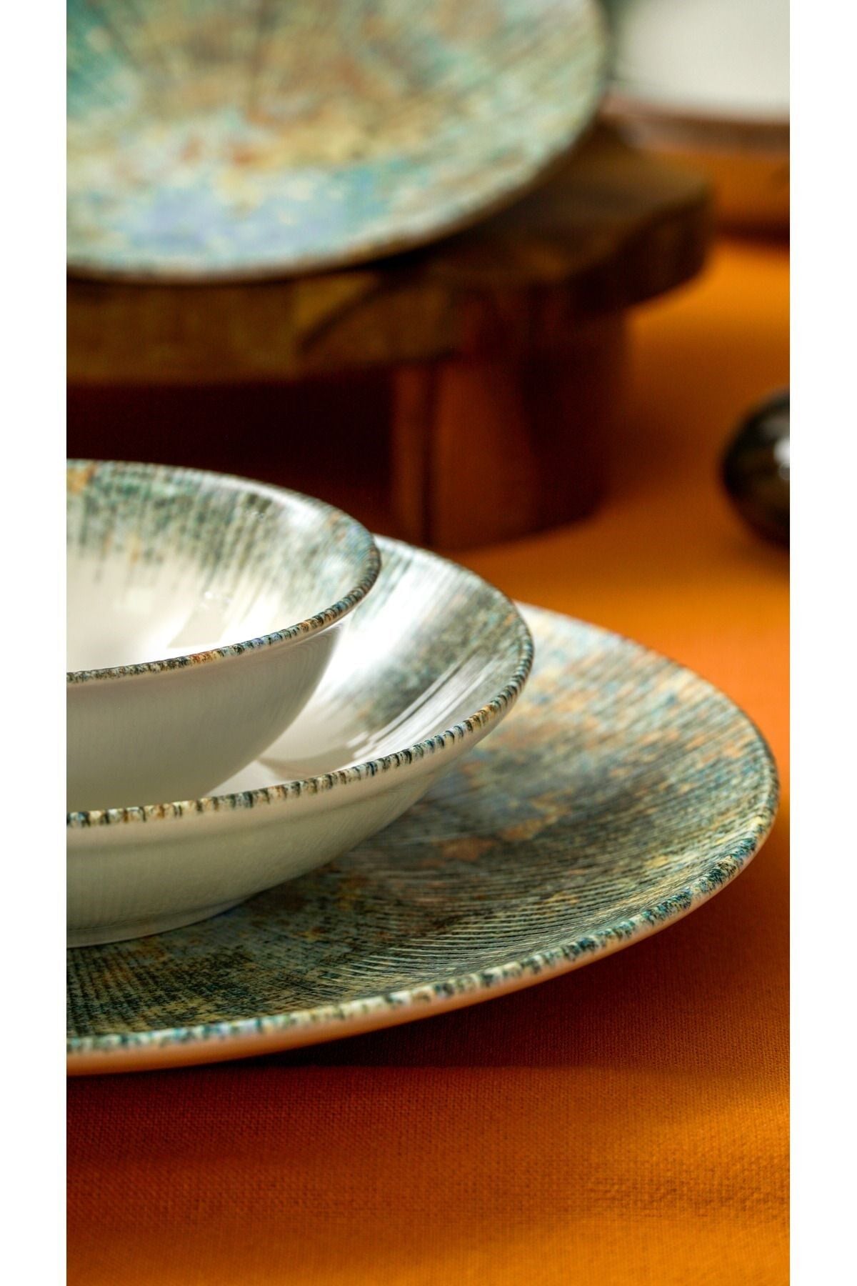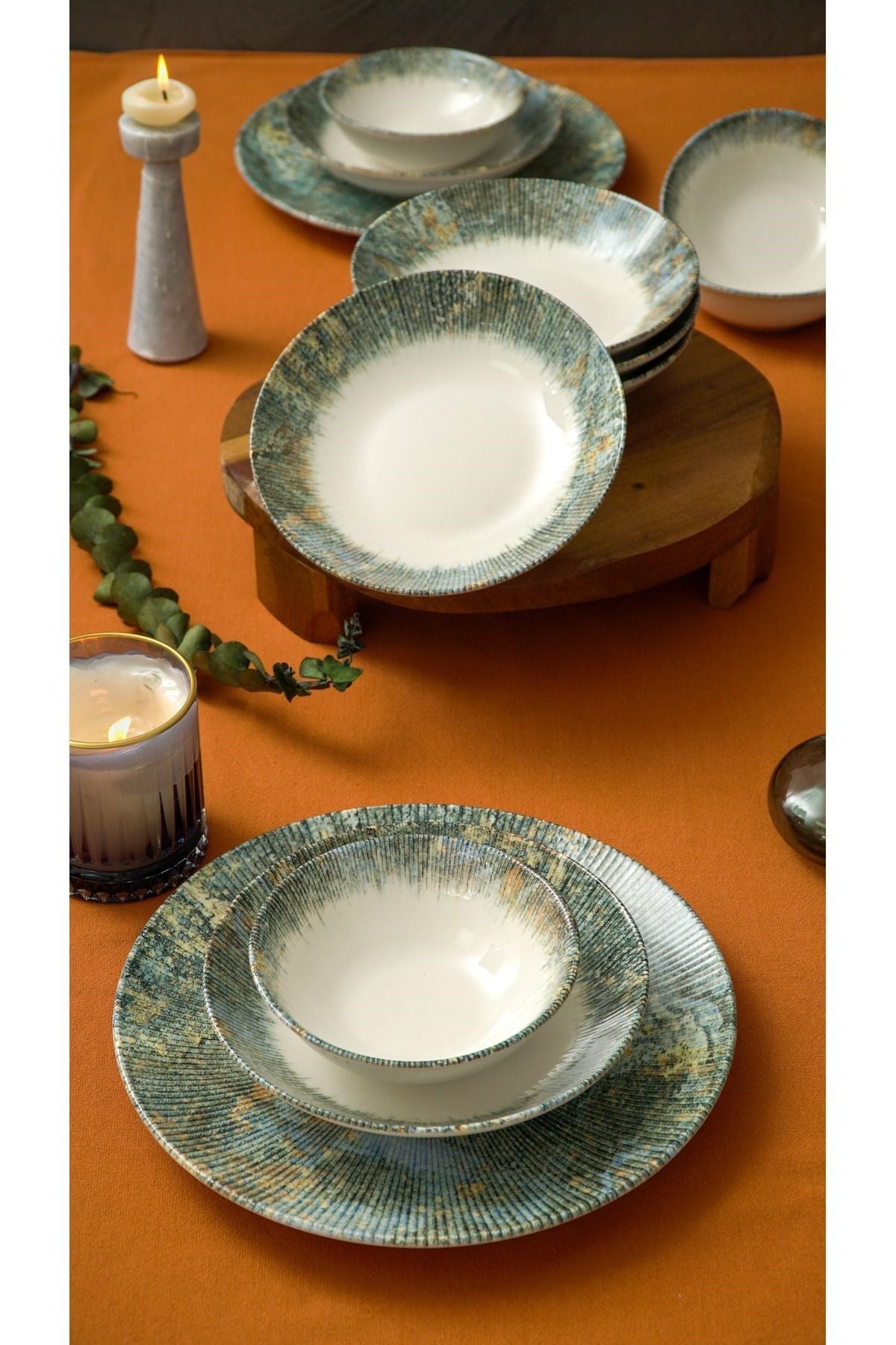 6 Adet 25 cm Servis Tabağı 6 Adet 19 cm Çukur Tabak 6 Adet 14 cm Kase