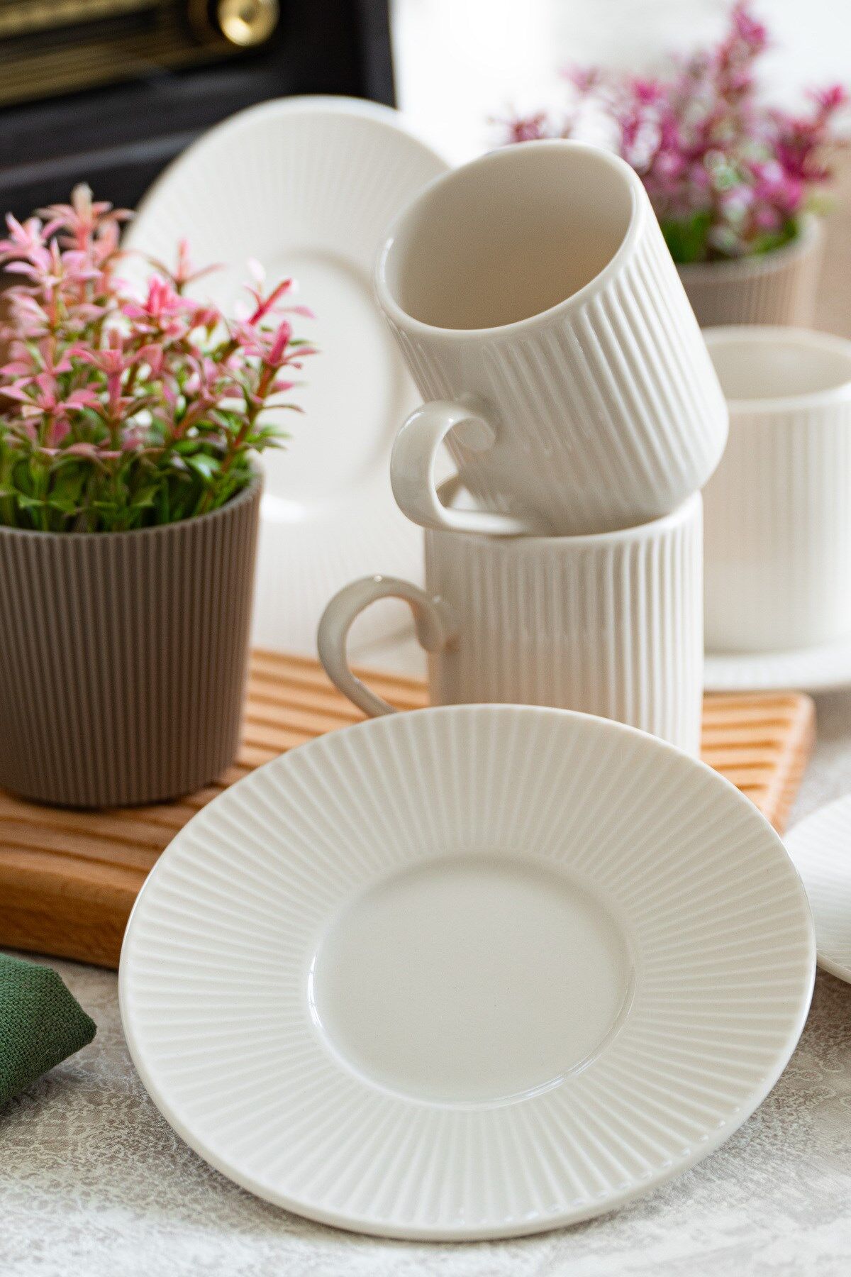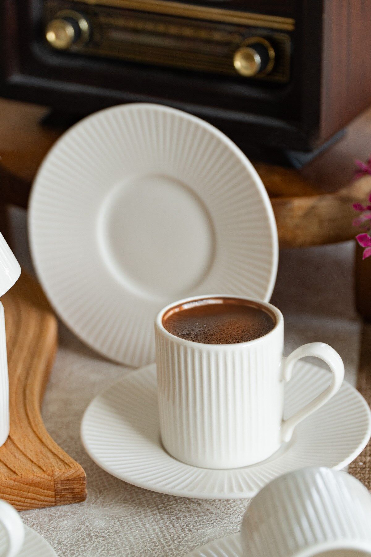 - Modern tasarımıyla dikkat çeken Elif 12 Parça Porselen Kahve Fincan Takımı, şıklığı ve zarafeti sofralarınıza taşır.; - 6 kişilik kapasitesiyle aile ve arkadaş toplantılarınızda ideal bir seçimdir; herkes için ayrı bir fincan sunar.; - Her bir fincan 100 ml hacme sahiptir, böylece kahvenizi tam istediğiniz ölçüde keyifle yudumlayabilirsiniz.; - Türkiye'de üretilen bu porselen kahve fincan takımı, yerel işçiliği ve kaliteyi ön plana çıkarır.; - 12 parça set içeriği ile hem günlük kullanım hem de özel günlerde rahatlıkla tercih edilebilir; eksiksiz bir set sunar.;