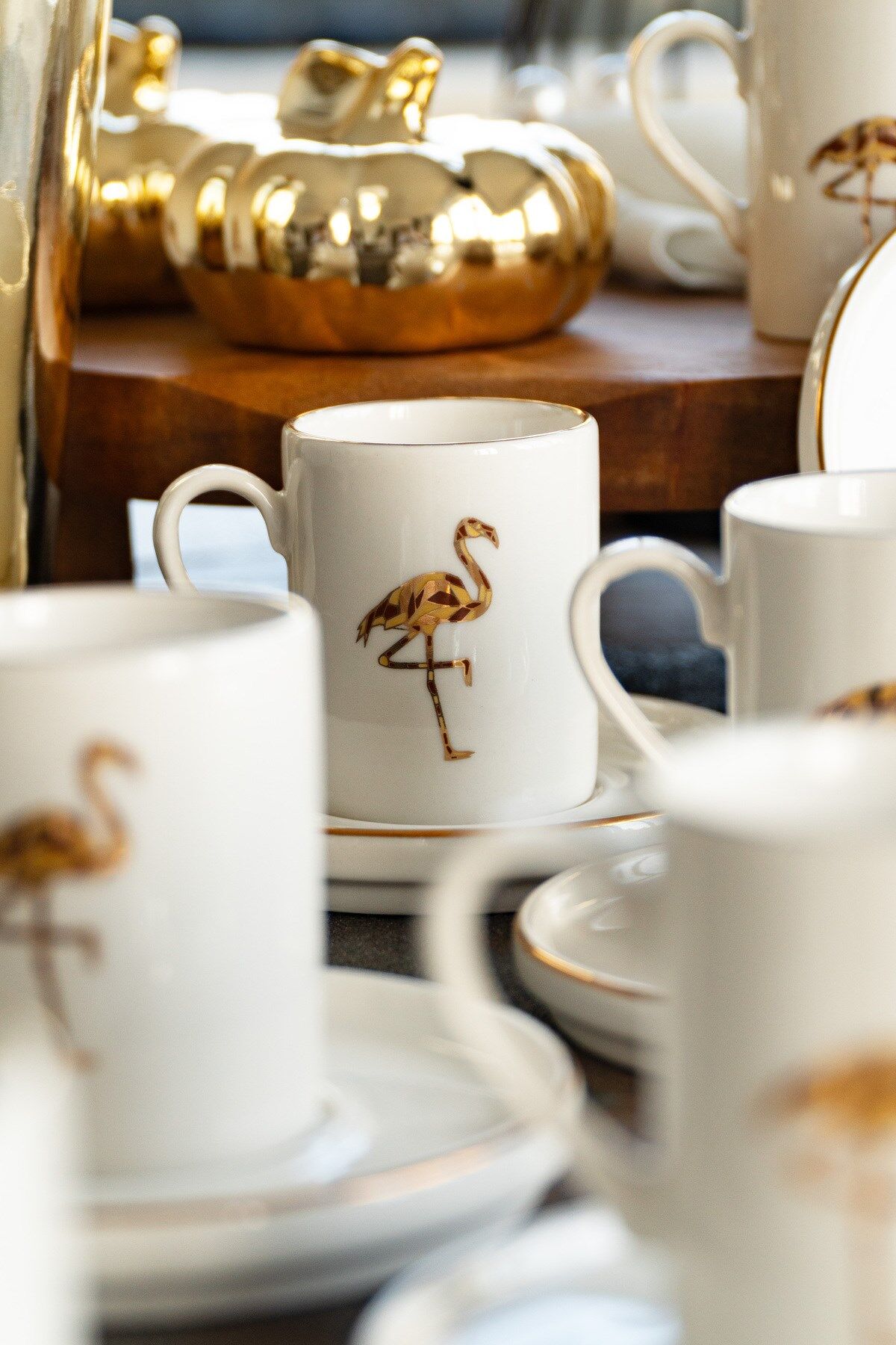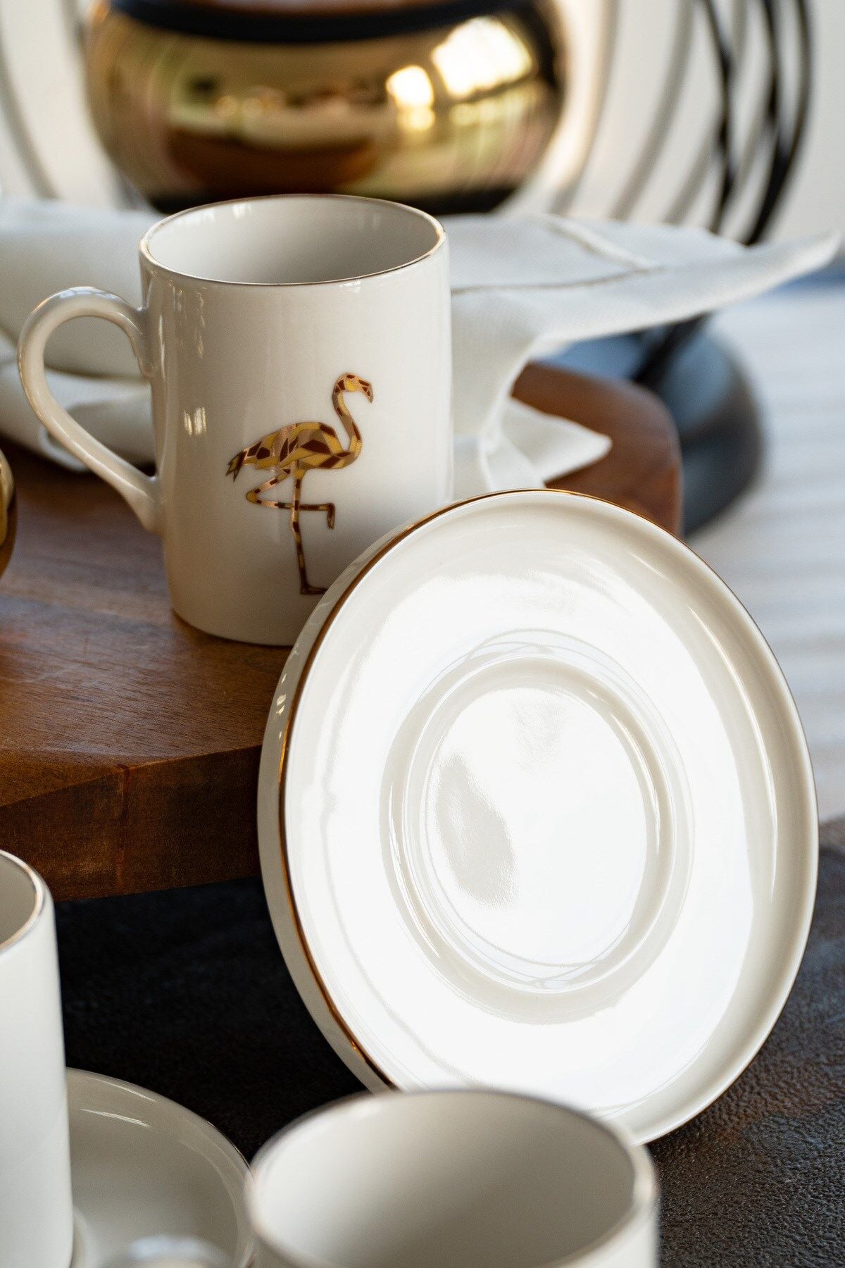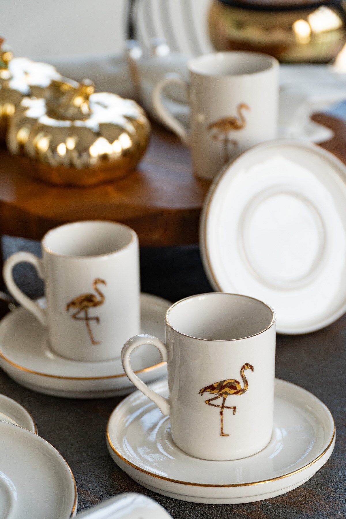 - Modern tasarımıyla dikkat çeken flamingo 12 parça 6 kişilik porselen kahve fincan takımı, şık sofralarınıza estetik bir dokunuş katıyor.; - 110 ml hacme sahip bu kahve fincanları, ideal miktarda kahve sunarak keyifli sohbetlerin vazgeçilmez bir parçası haline geliyor.; - Türkiye'de üretilen bu ürün, yerel işçilik ve kalite standartlarına uygun olarak özenle hazırlanmıştır.; - 6 kişilik geniş kapasitesiyle aile yemekleri, arkadaş toplantıları ve özel günler için ideal bir seçenektir.;