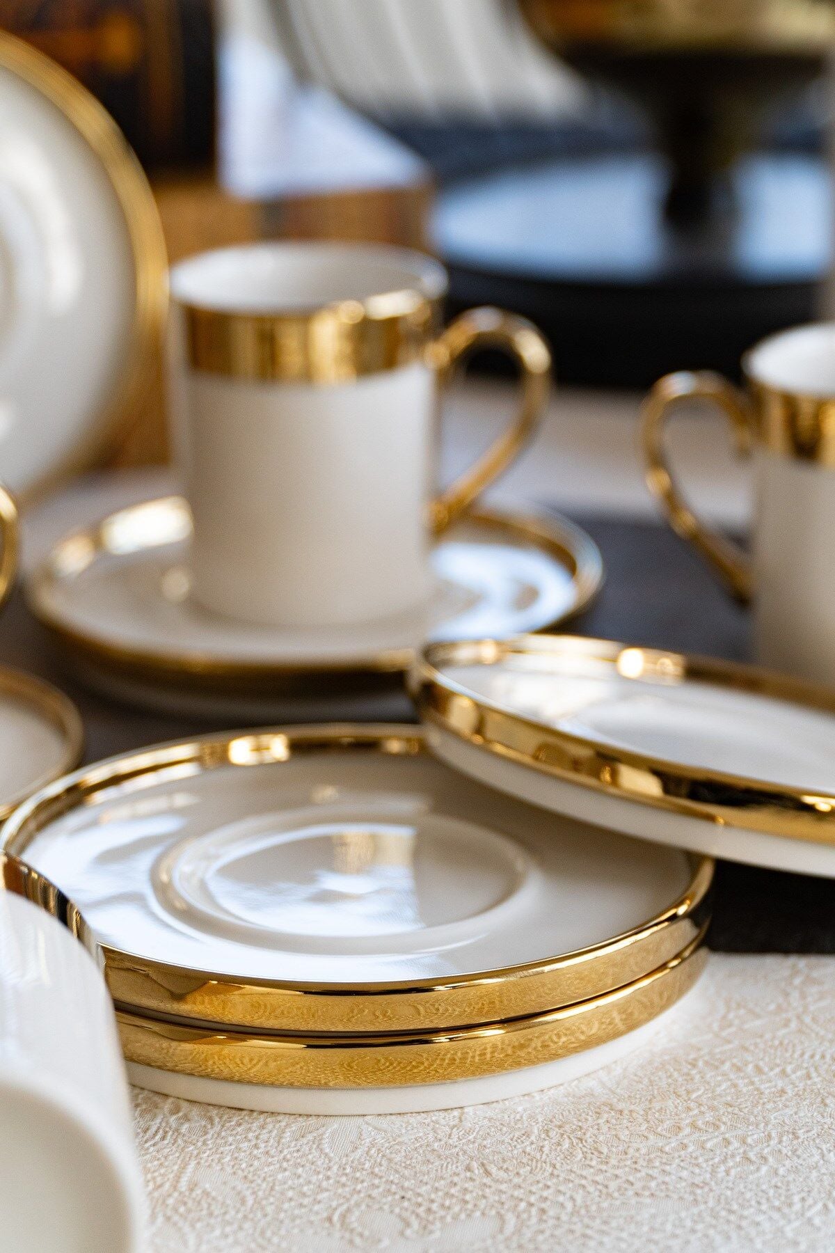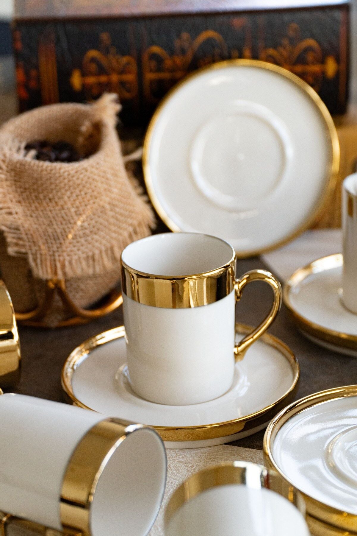 Gözde 12 Parça 6 Kişilik Altın Yaldız Kahve Fincan Takımı