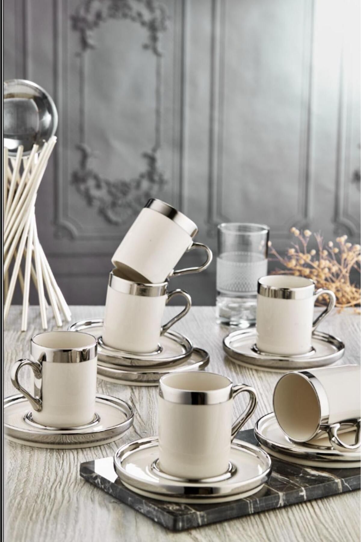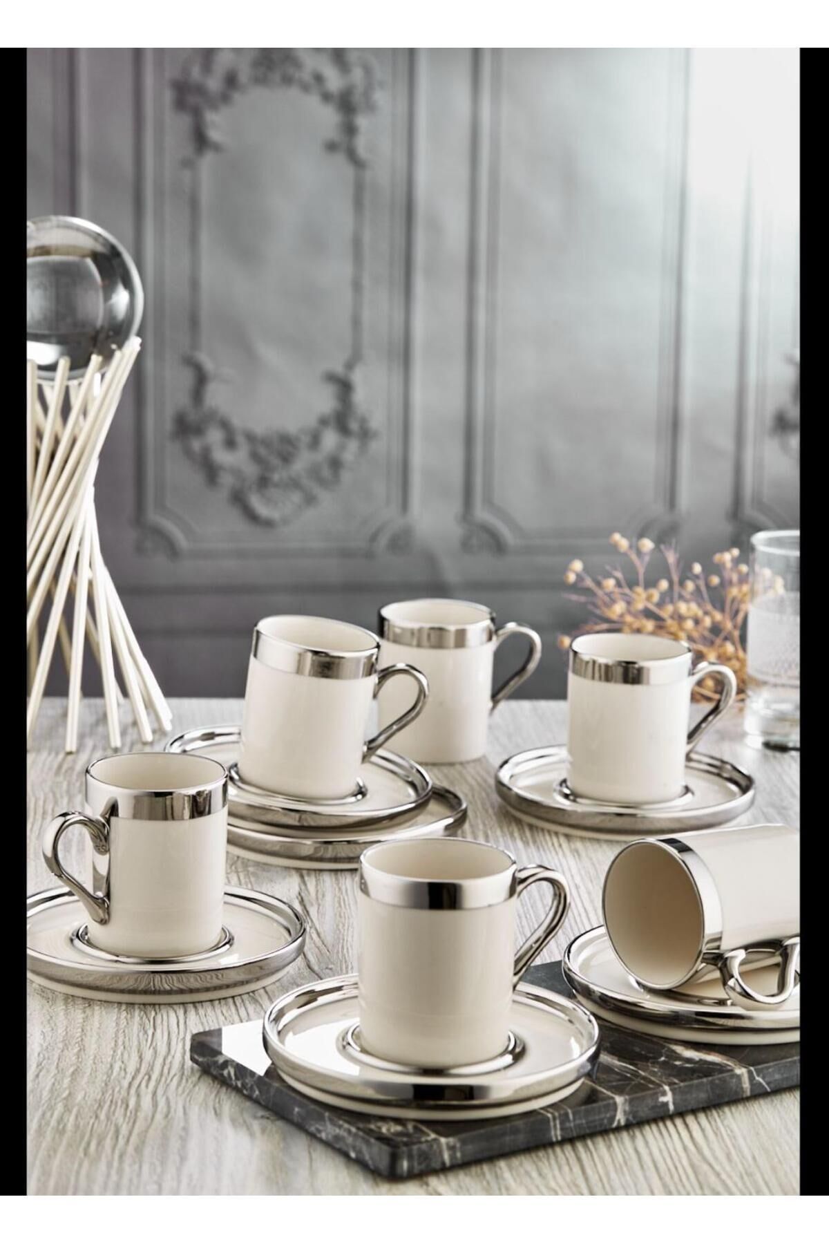 Gözde 12 Parça Platin Yaldız Kahve Fincan Takımı