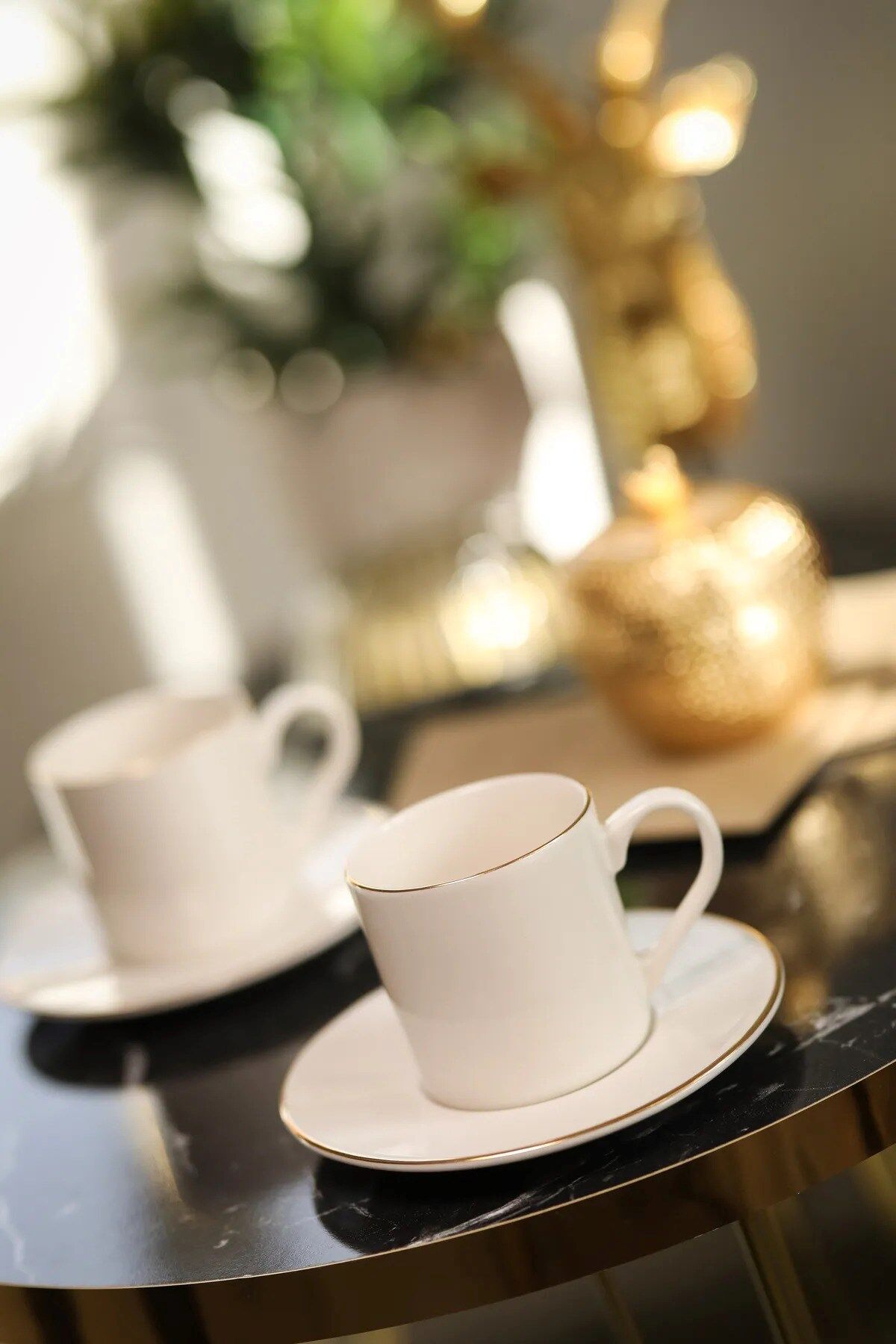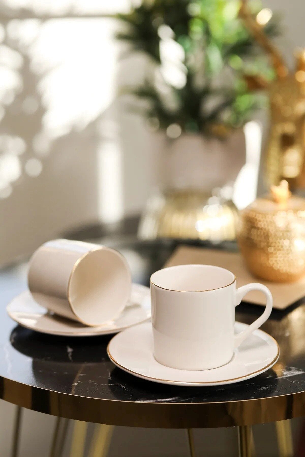 Sadelik ve estetik buluşuyor... ; Gerçek altın ; Porselen kahve takımı içeriği: ; 2 adet 6 cm kahve fincanı ; 2 adet 12 cm kahve tabağı ; Bulaşık makinesinde düşük sıcaklıklarda ve kısa programlarda yıkanmalıdır ;