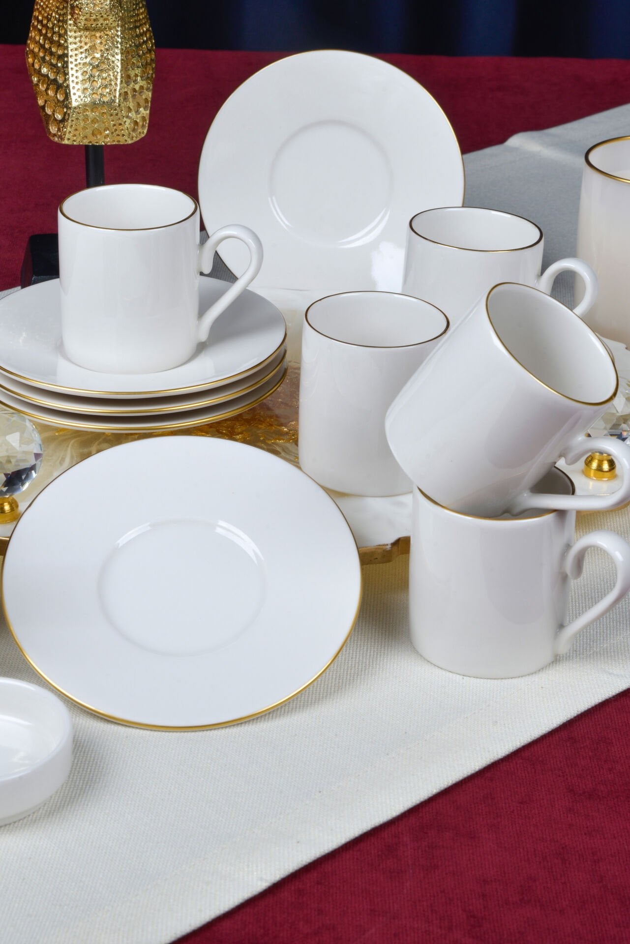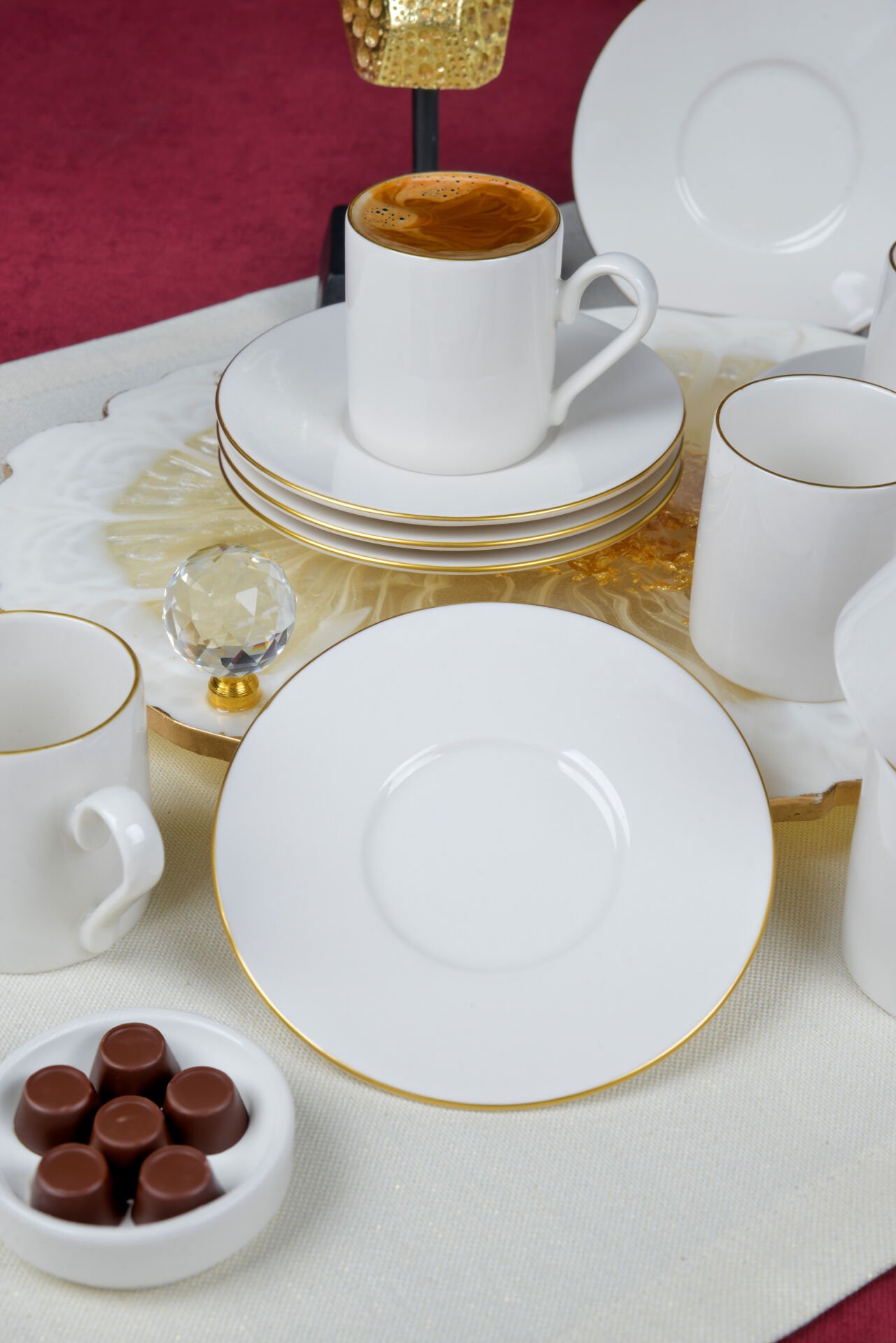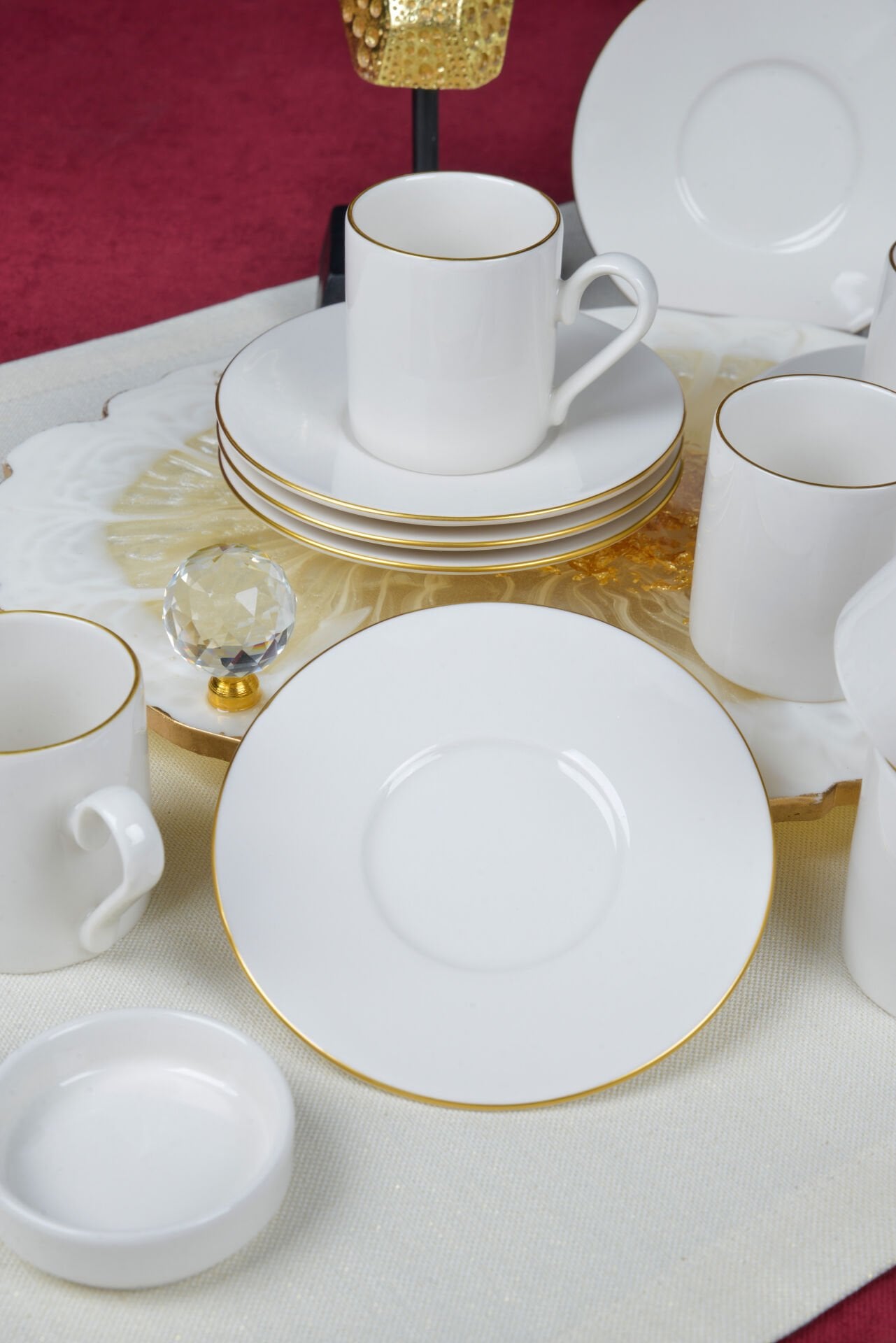 Hayal Altın Yaldız 12 Parça 6 Kişilik Porselen Kahve Fincan Takımı Kırık Beyaz
