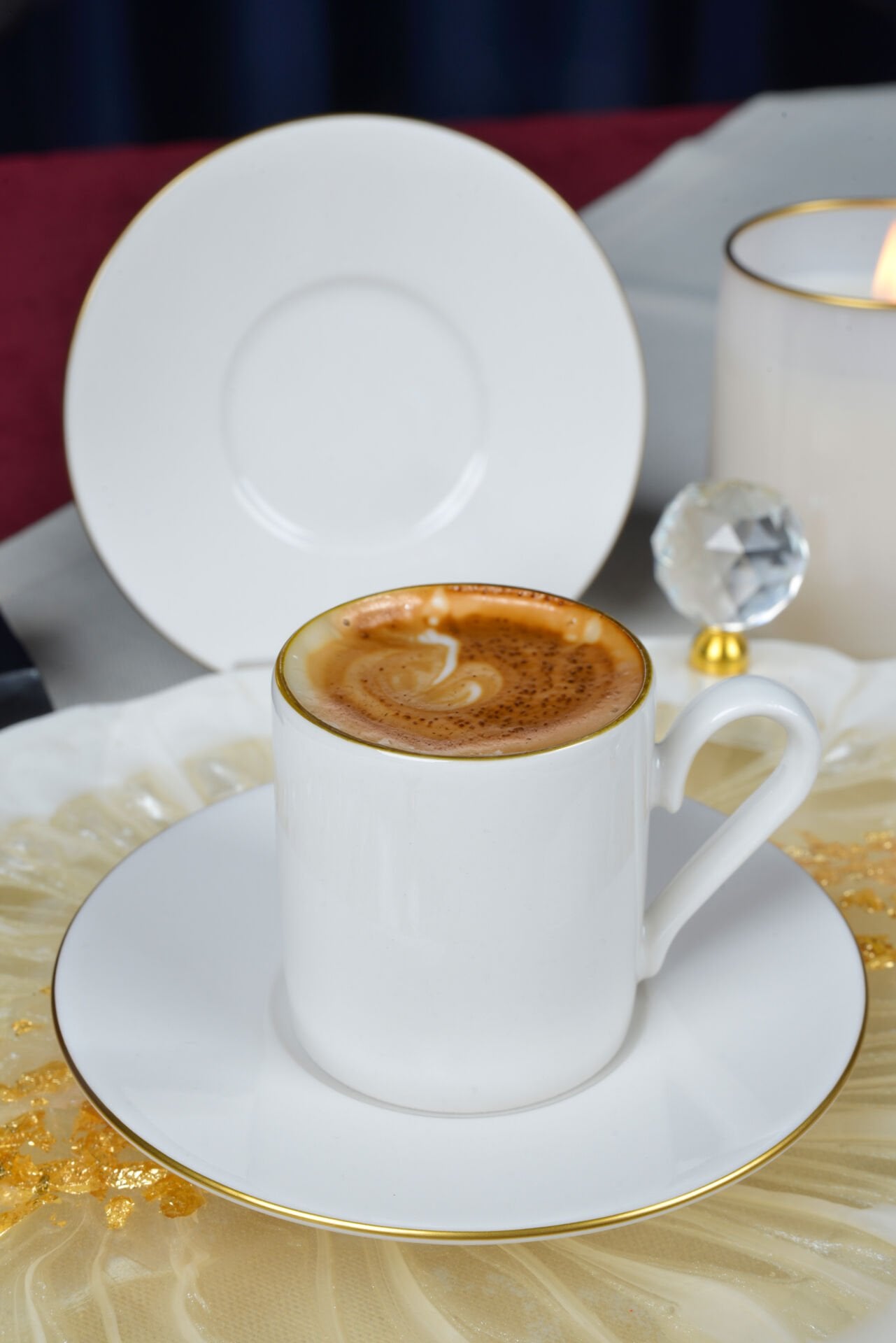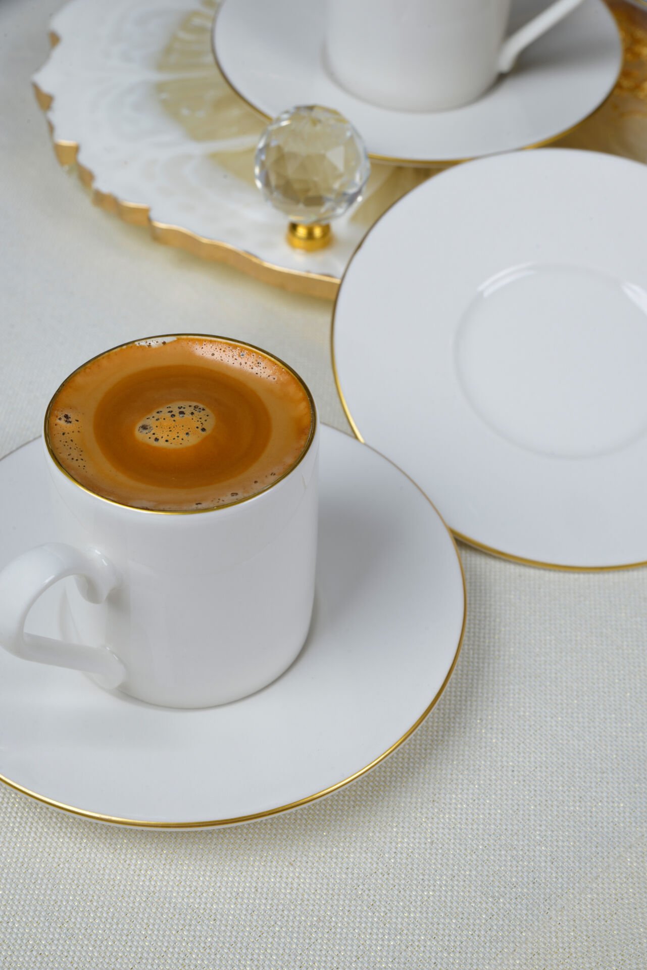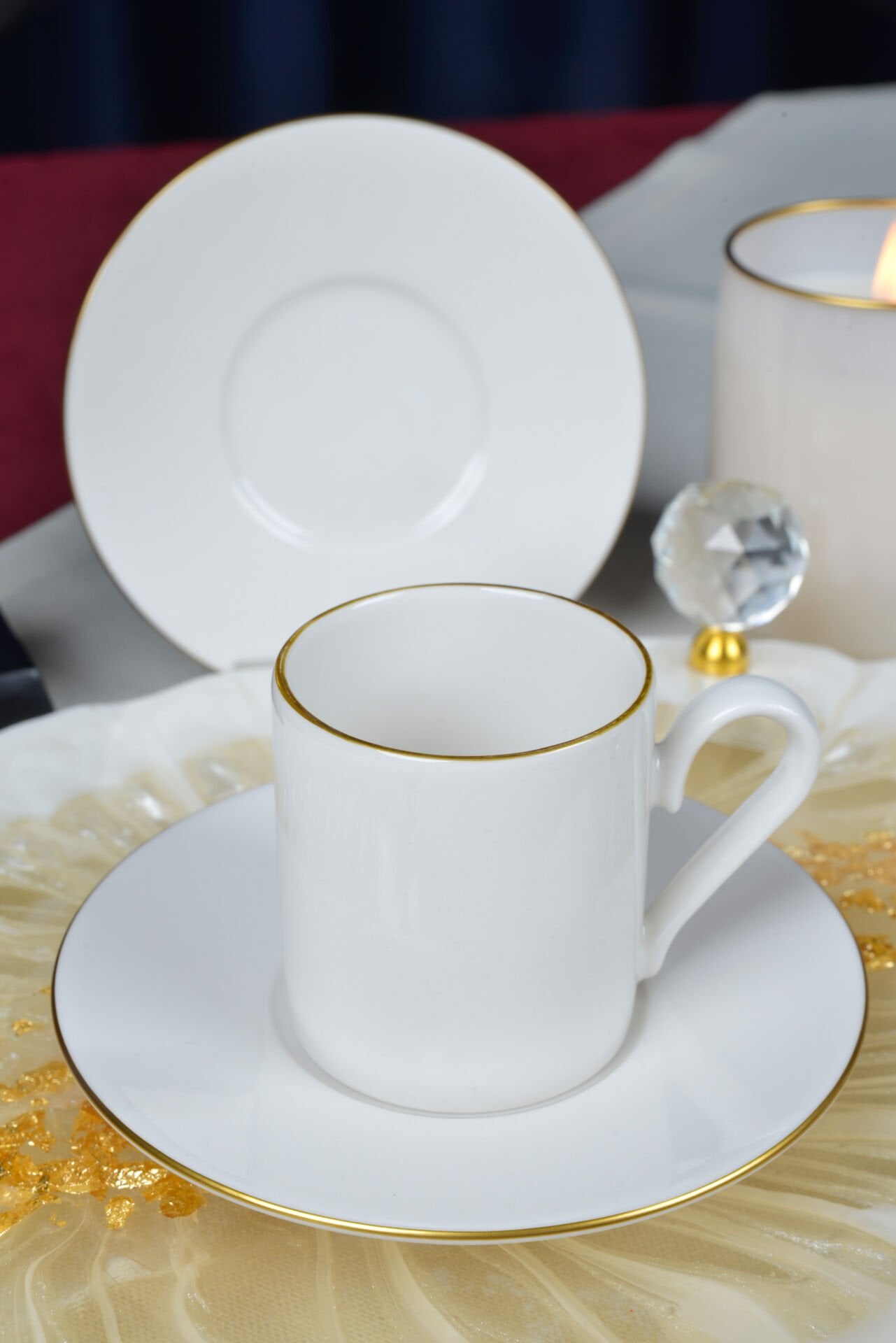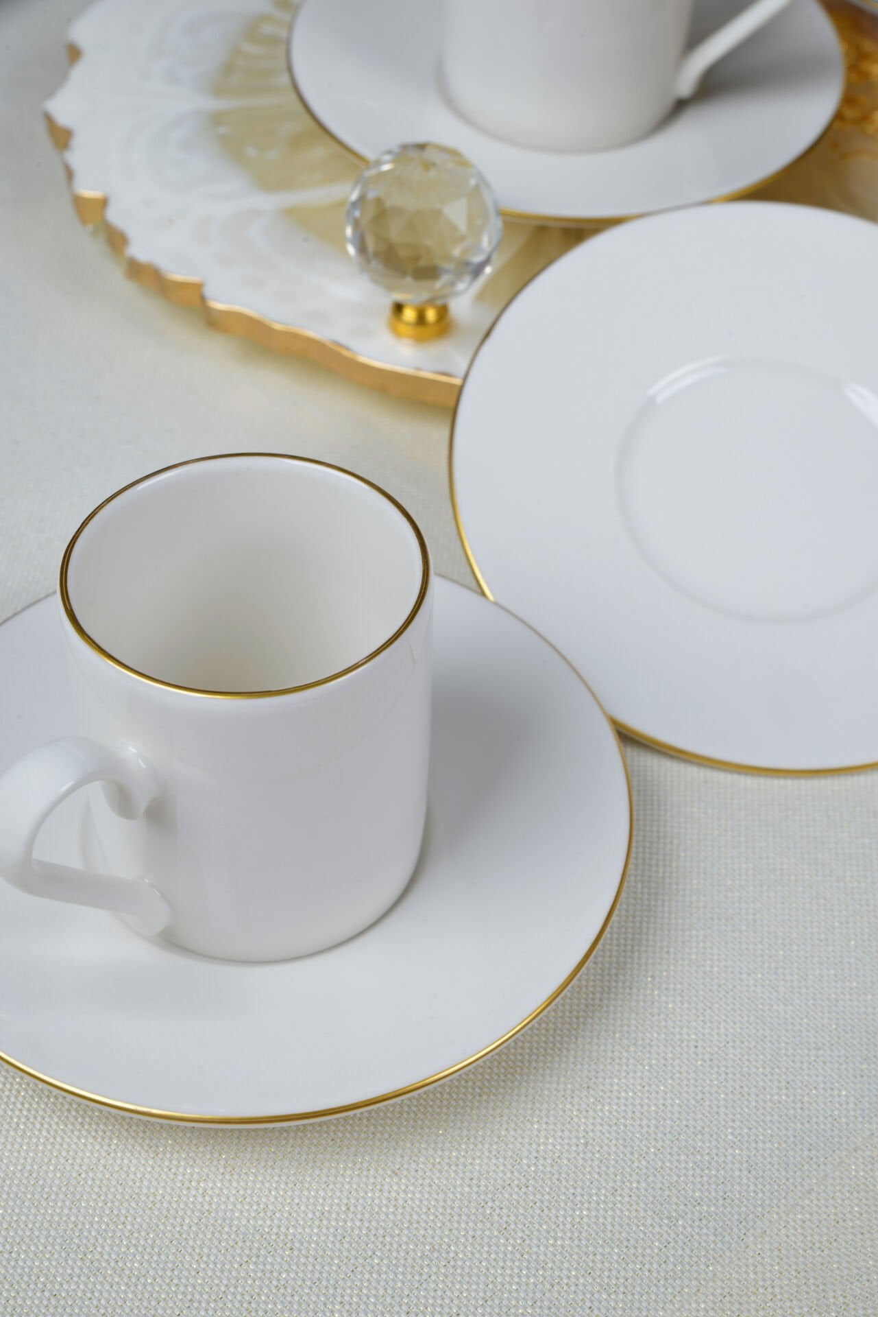 Hayal Altın Yaldız 12 Parça 6 Kişilik Porselen Kahve Fincan Takımı Kırık Beyaz
