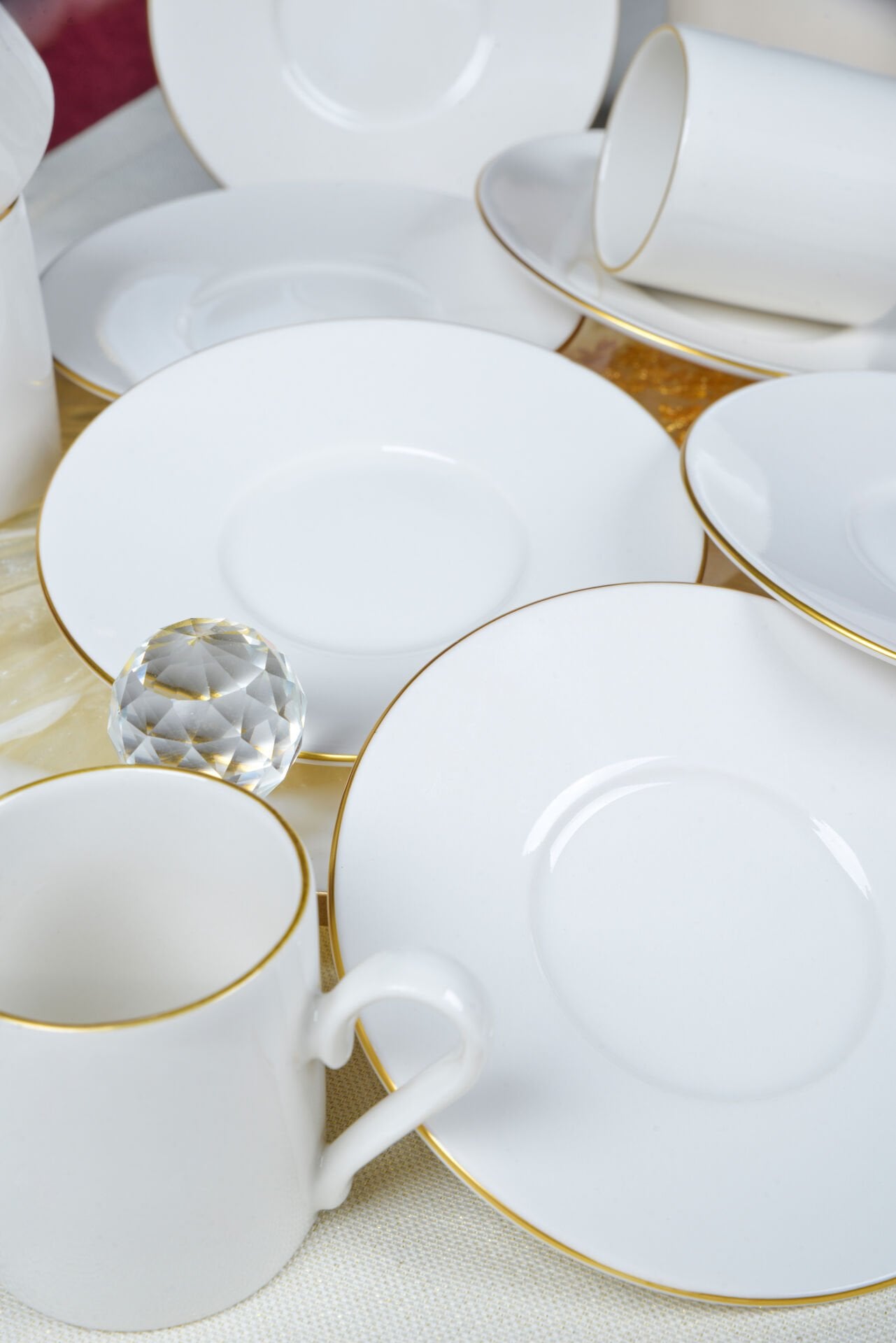 Hayal Altın Yaldız 12 Parça 6 Kişilik Porselen Kahve Fincan Takımı, kırık beyaz porselen üzerine işlenmiş altın yaldız detaylarıyla sofralarınıza ışıltı ve zarafet katacak. ; Her bir fincan ve tabak, özenle tasarlanmış kusursuz işçilikle üretilmiştir. ; Bu lüks kahve fincan takımı ile aileniz ve misafirlerinizle keyifli kahve saatleri geçirmenin yanı sıra, özel günlerde sevdiklerinize unutulmaz bir hediye de sunabilirsiniz. ; Porselen Rengi : Kırık Beyaz Altın Yaldız İşlemeli ; 100 ml Hacim, 6 Adet 6 cm Fincan (Ağız Çapı), 6 Adet 12 cm Fincan Tabağı. ;