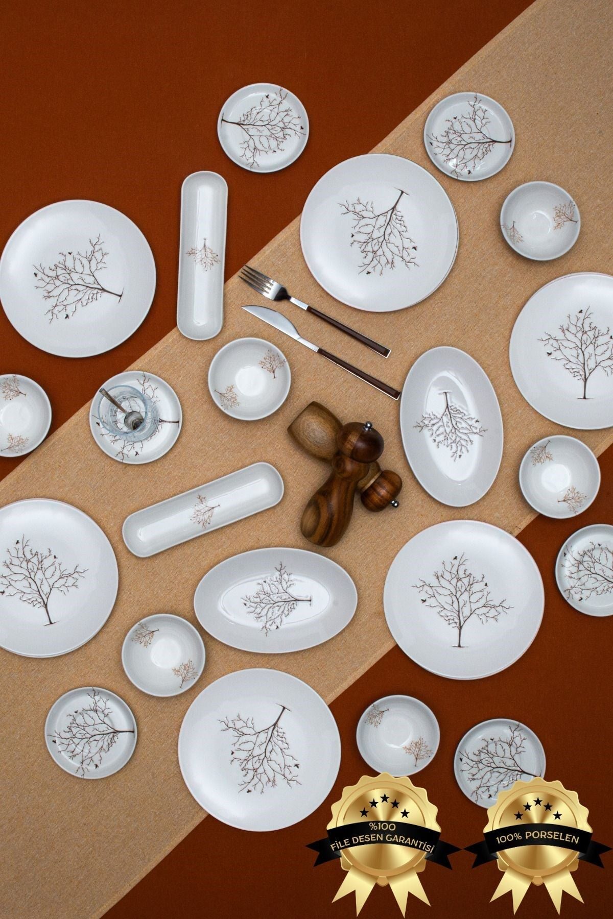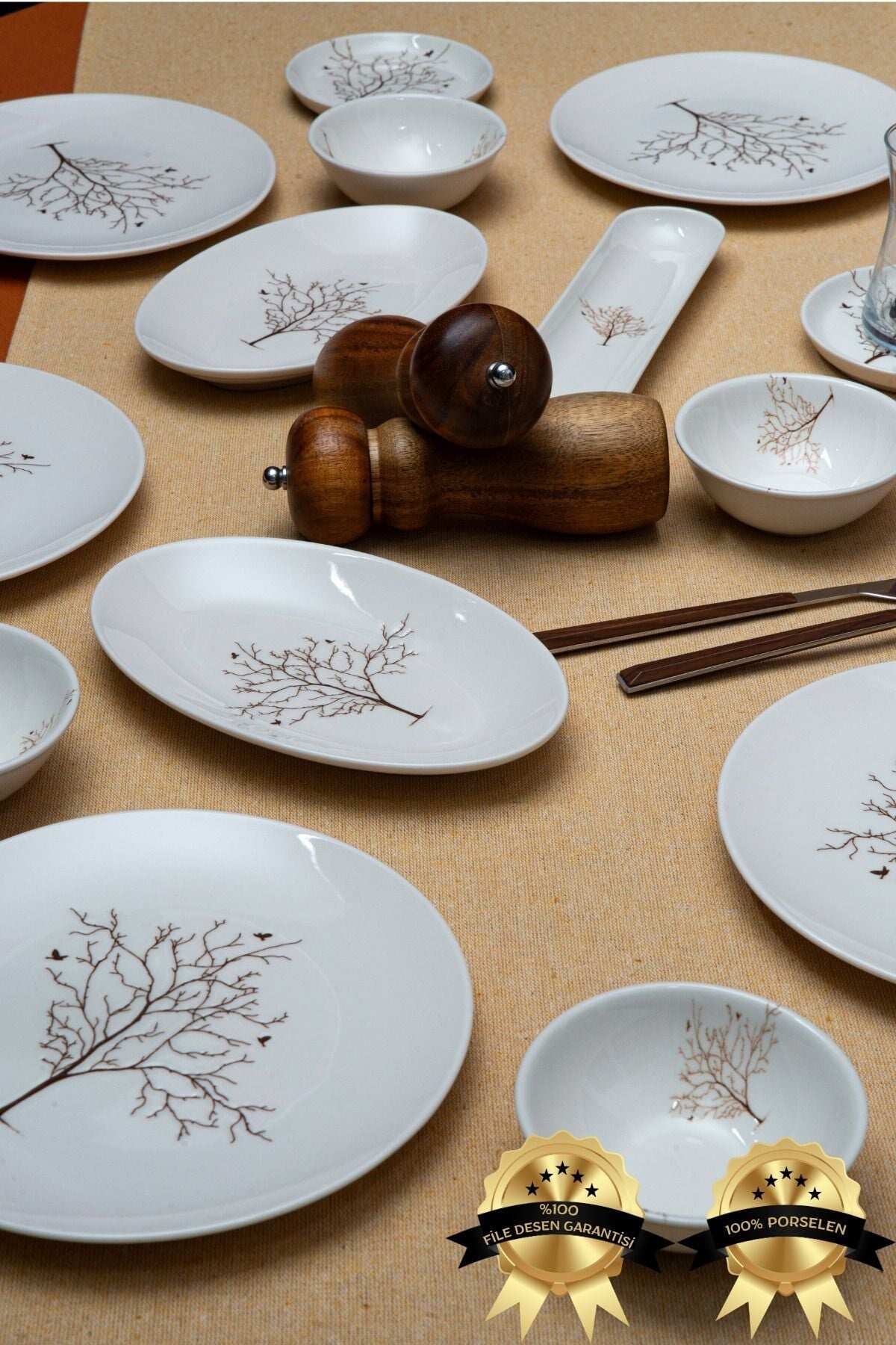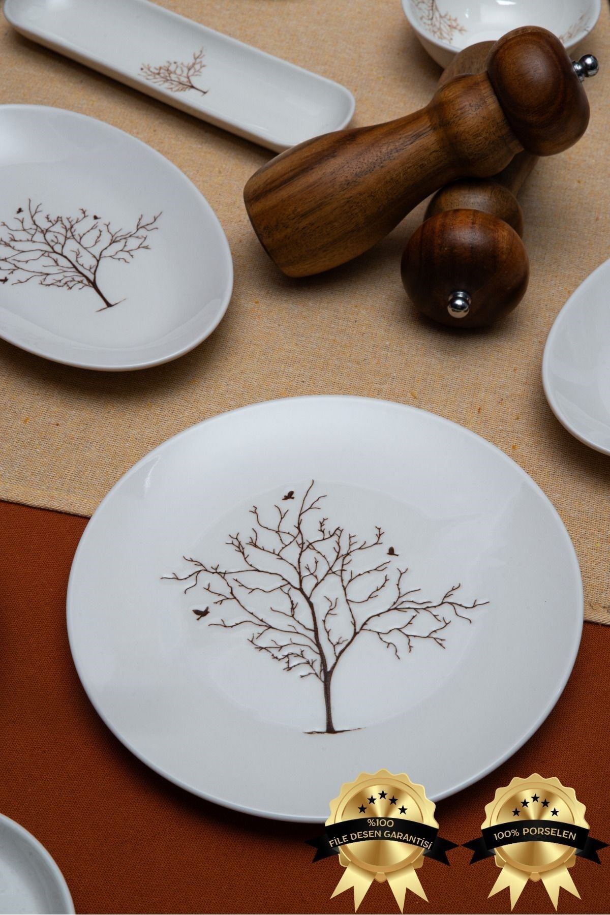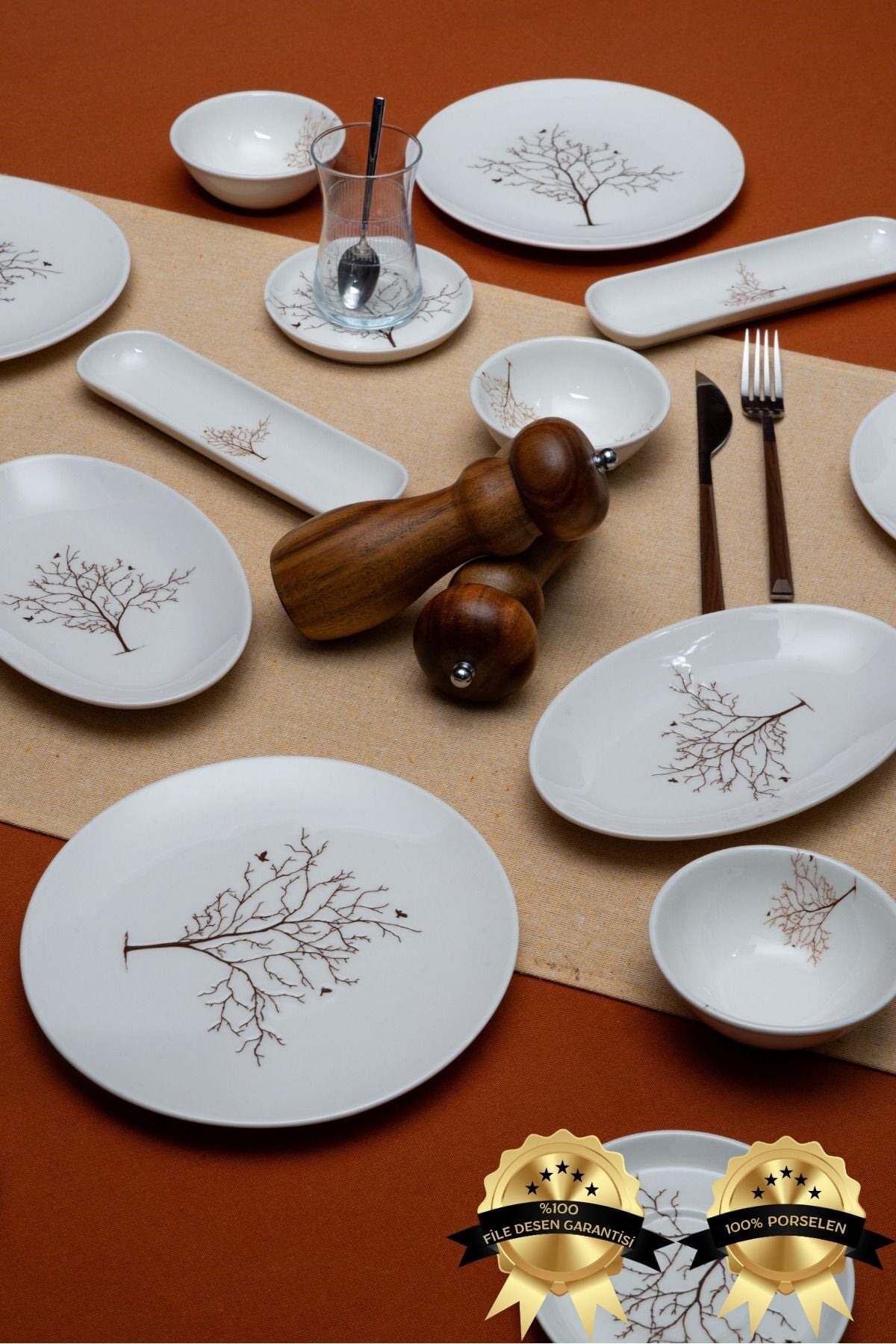 Hayat ağacı 16 Parça 6 Kişilik Porselen Kahvaltı Takımı