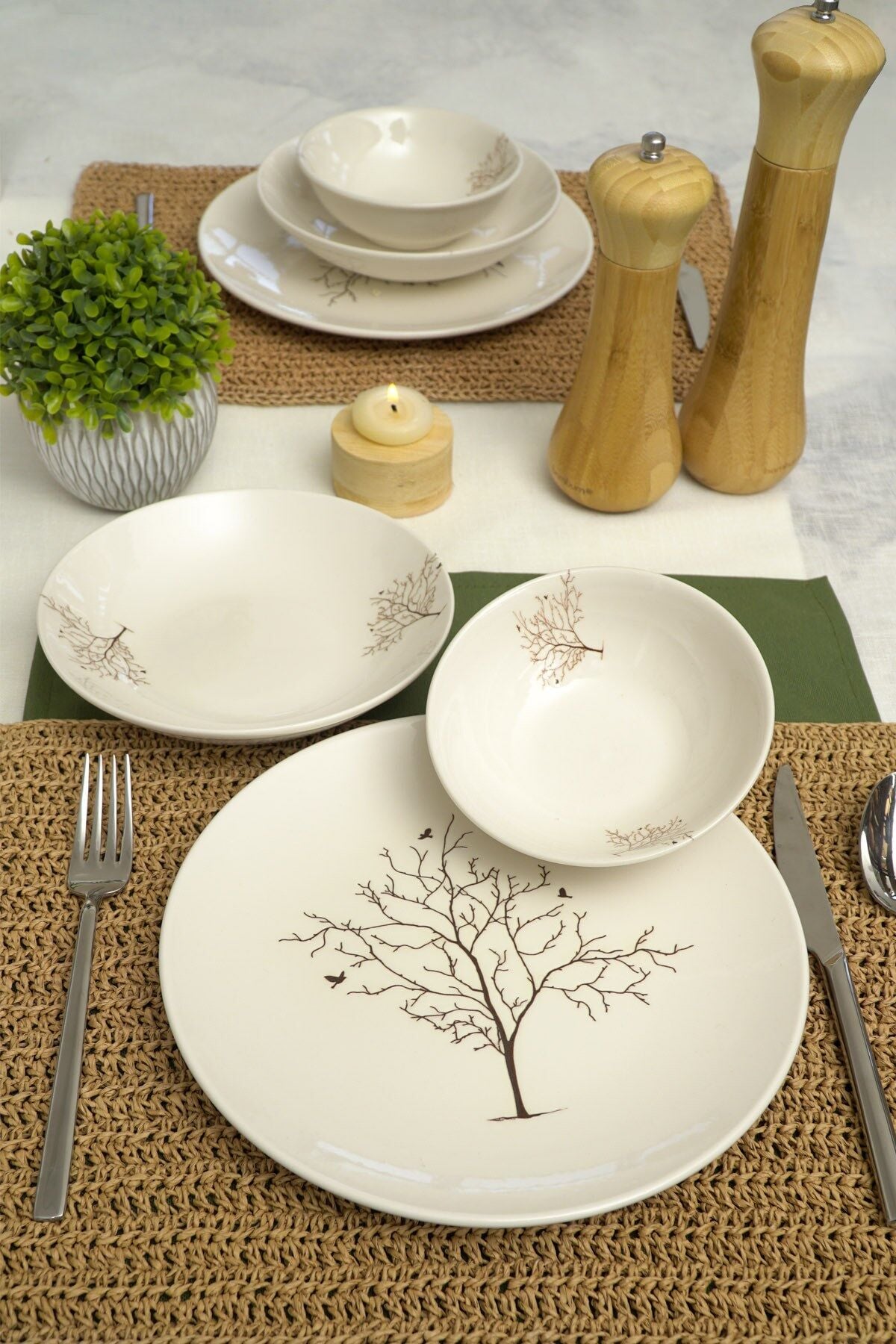 Hayat Ağacı 18 Parça 6 Kişilik Porselen Yemek Takımı