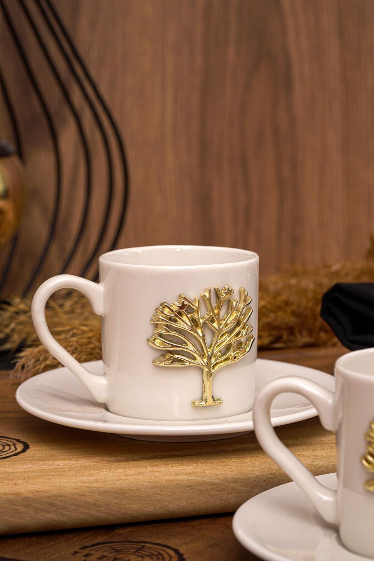 Kahve keyfinizi altın bir dokunuşla taçlandıracak olan "Hayat Ağacı" motifli Altın Kabartma Kahve Fincan Takımı, estetik tasarımı ve lüks detaylarıyla dikkat çekiyor. ; Her sette, iki kişilik için ideal olan 4 adet fincan ve eşleşen 4 adet tabak bulunmaktadır. ; Her bir fincan, 100 ml kapasiteye sahiptir, böylece en sevdiğiniz kahve çeşitlerini keyifle servis edebilirsiniz. ; Takımın özel dokusu ve işçiliği, üzerinde yer alan "Hayat Ağacı" kabartma motifleriyle kendini gösterir. ; Bu motif, yaşamın sonsuzluğunu ve büyüklüğünü simgelerken, takıma ayrıcalıklı bir hava katar. Altın kabartma detaylar, takımın lüks ve zarif bir görünüme sahip olmasını sağlar. ; Yüksek kaliteli porselen malzeme, dayanıklılığı ve şıklığı bir araya getirerek uzun süreli kullanım sağlar. "Hayat Ağacı" motifli Altın Kabartma Kahve Fincan Takımı, evde veya işyerinde kahve keyfinizi daha da özel hale getirmek için ideal bir seçenektir. ; Kendiniz için veya sevdikleriniz için unutulmaz bir hediye olarak da mükemmel bir tercihtir. ; Şıklık arayanlar için tasarlanmış bu takım, en özel anlarınıza değer katmaya hazır. ;