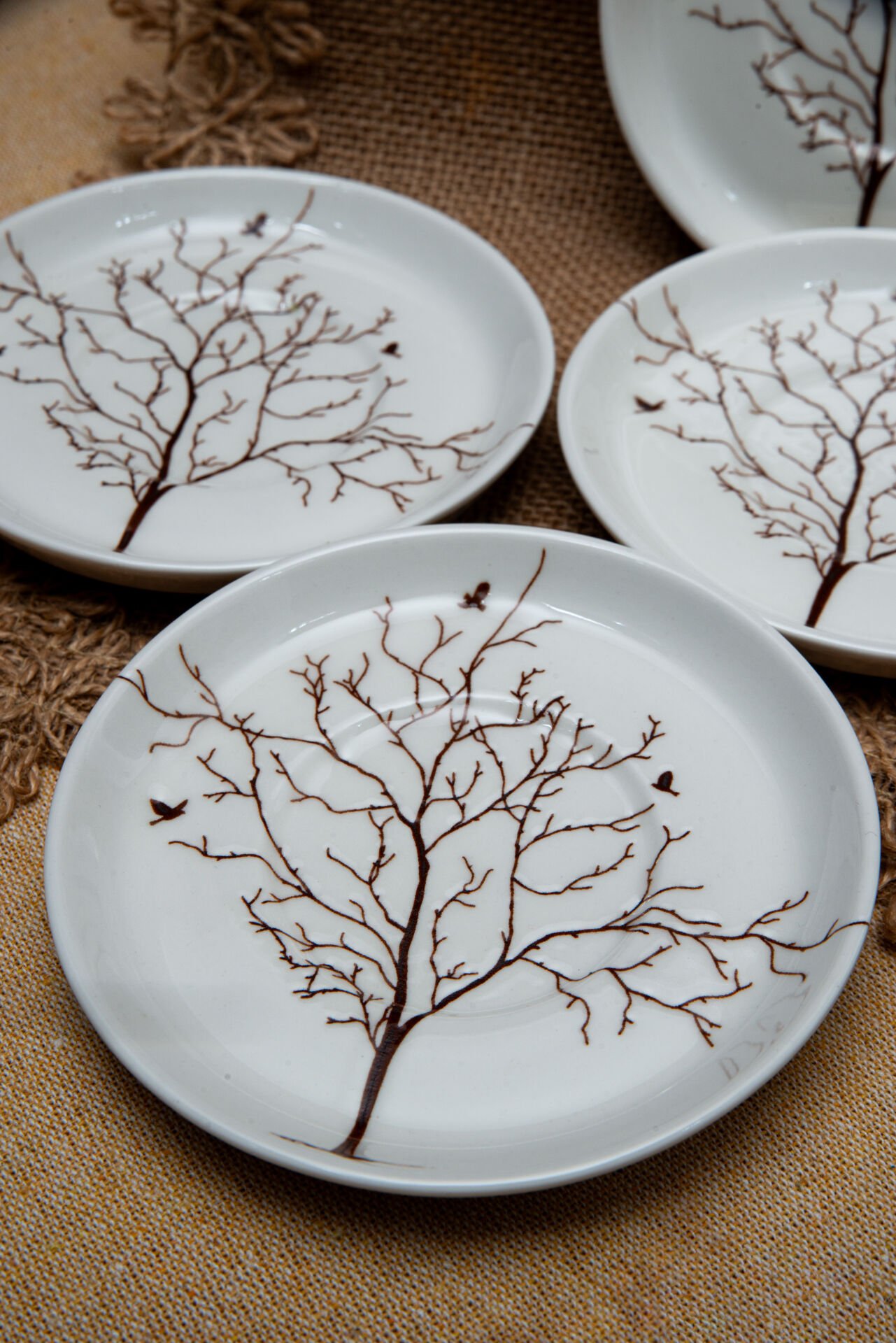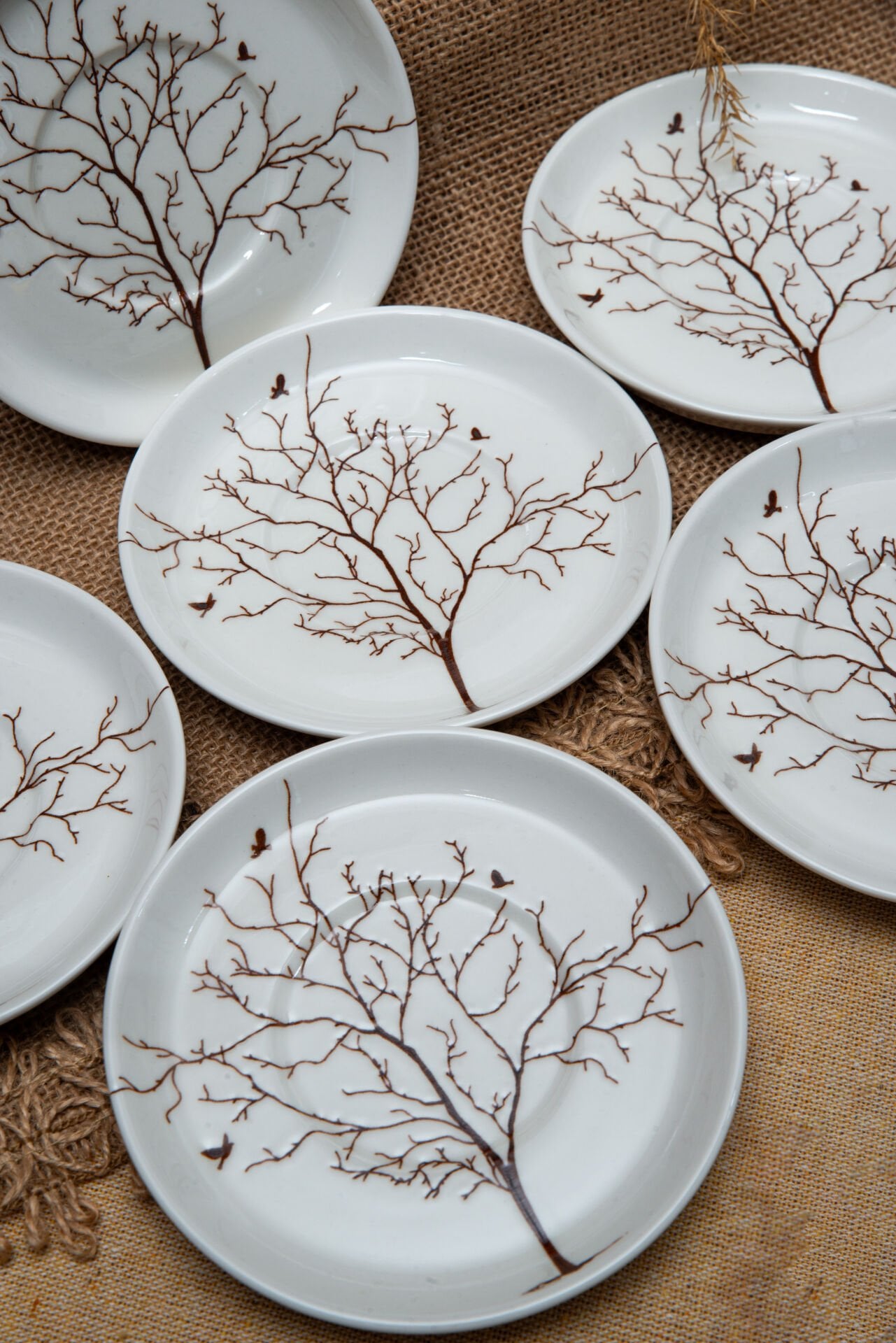Hayat Ağacı Porselen Çay Tabağı 6'lı 13cm Kırık Beyaz