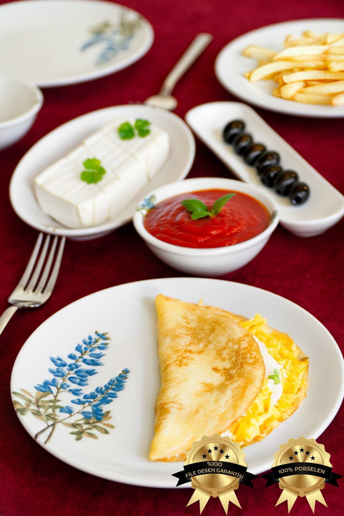 - Yuvarlak tasarımı ile modern ve şık bir görünüm sunar.; - BPA içermeyen yapısıyla sağlığınızı düşünerek üretilmiştir.; - Altı kişilik geniş kapasitesiyle aile kahvaltılarınızda idealdir.; - Yüksek kaliteli porselen malzemesi, uzun ömürlü kullanım vaat eder.; - Kahvaltı seti içerik olarak 6 adet servis, 6 adet reçellik, 2 adet zeytinlik, 2 adet kayık tabaktan oluşmaktadır.; 16 parçadan oluşan set, çeşitli kahvaltılık ihtiyaçlarınızı karşılar.; - Türkiye menşeli olması yerel üretim gururunu yansıtır.
