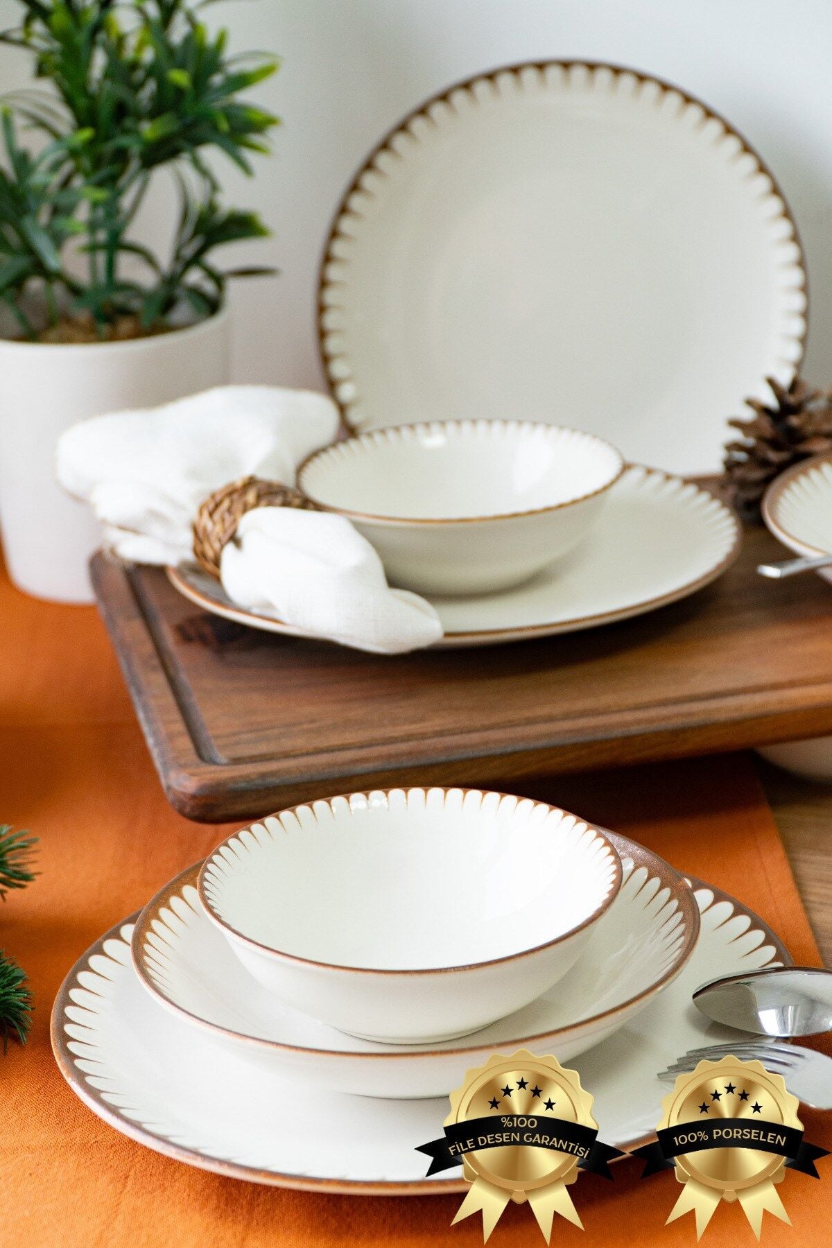 Karamel 18 Parça 6 Kişilik Porselen Yemek Takımı