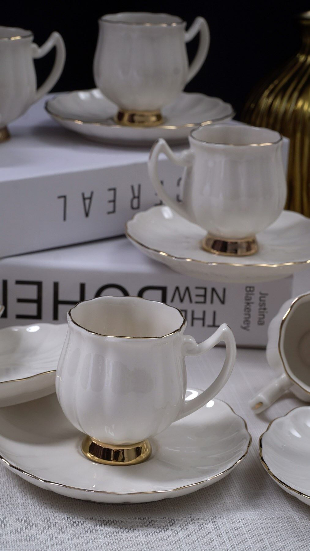 Lale 12 Parça 6 Kişilik Altın Yaldızlı Kahve Fincan Takımı