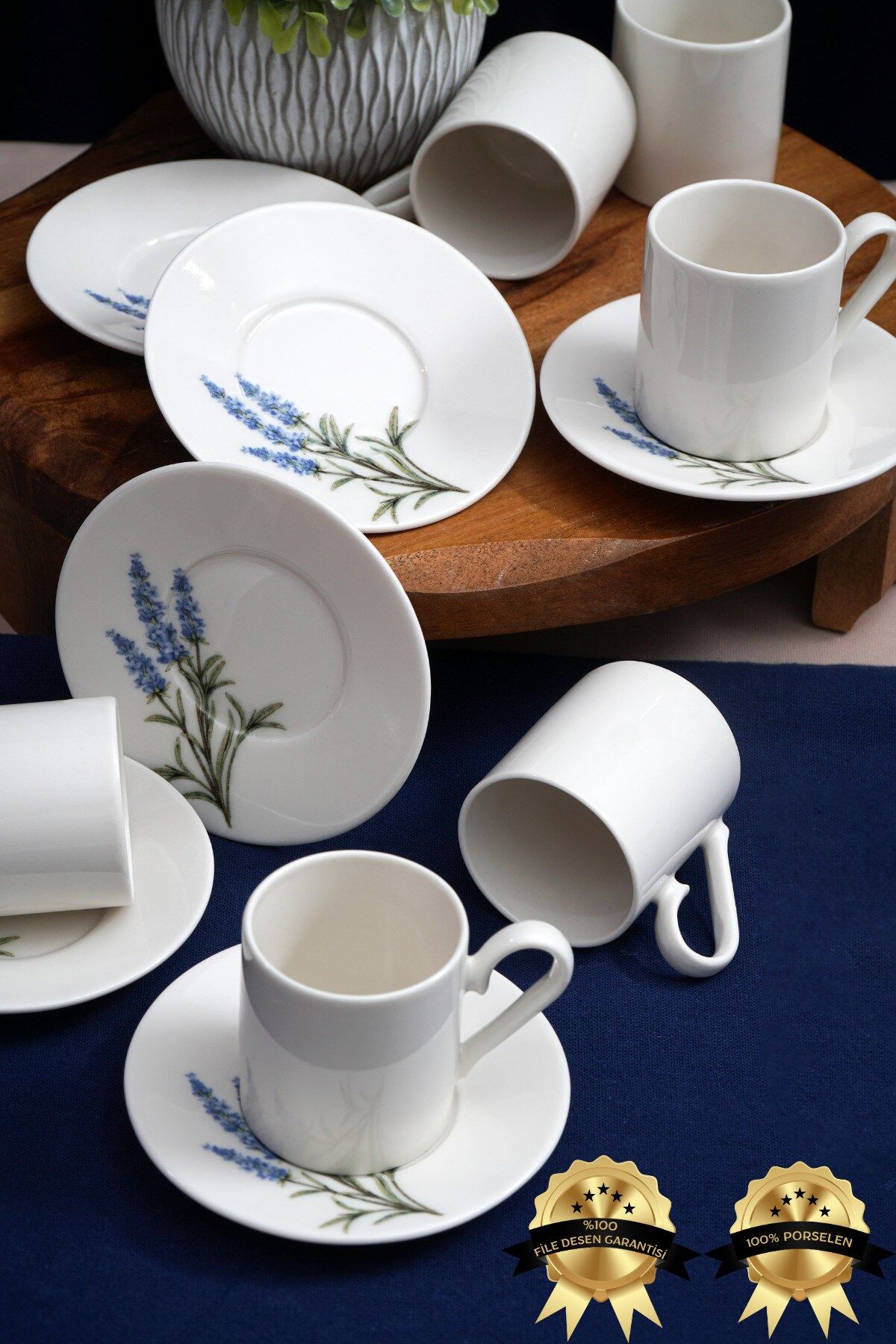 Lavanta 12 Parça 6 Kişilik Porselen Türk Kahvesi Fincanı Seti