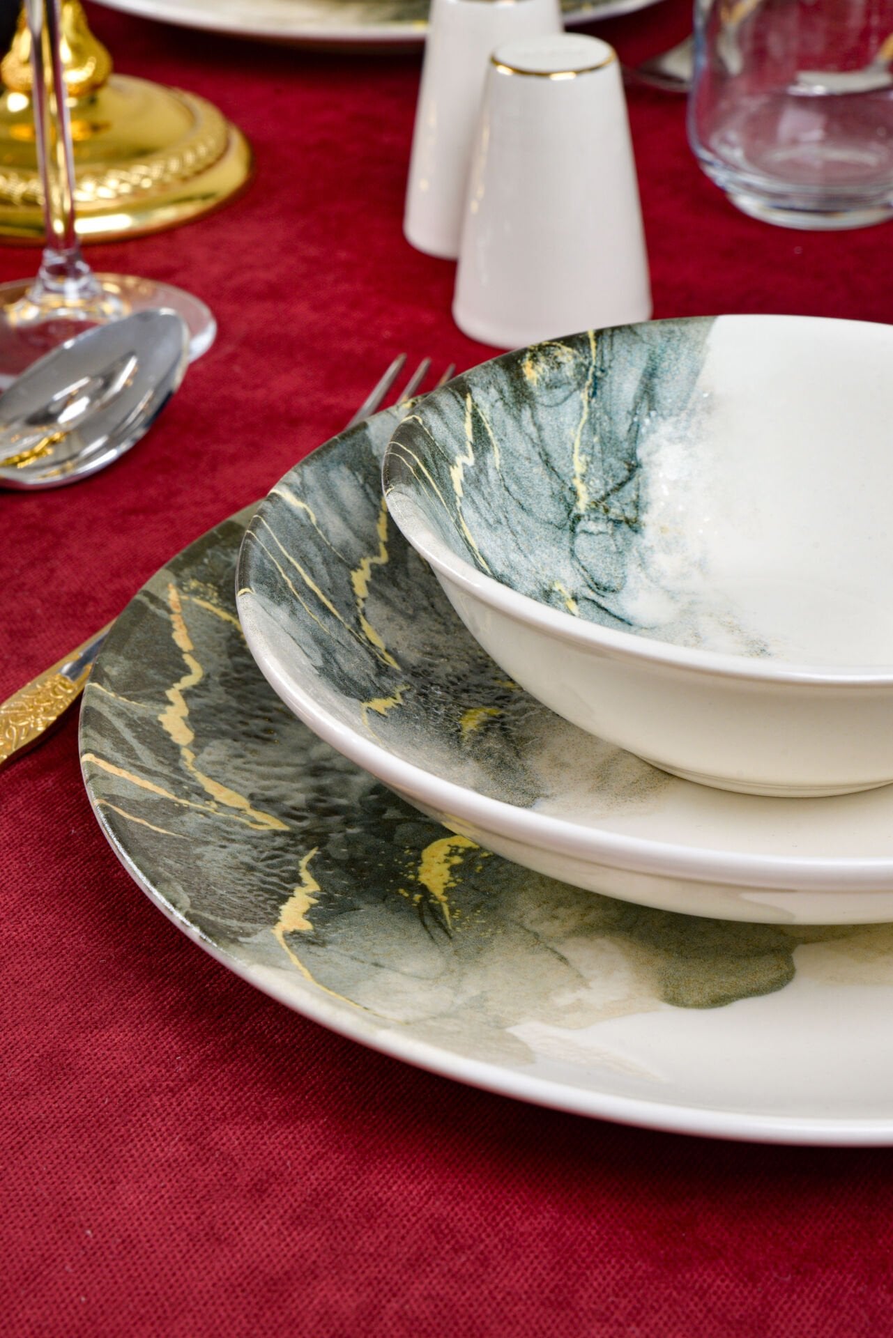- 6 kişilik ailelerin ihtiyaçlarına uygun, modern tasarımıyla dikkat çeken MERMER 18 Parça Yemek Takımı.; - Yüksek kaliteli porselen malzemesi sayesinde uzun ömürlü kullanım sunar ve dayanıklılığı ile ön plana çıkar.; - Yuvarlak şekliyle klasik ve zamansız bir görünüm sergileyen bu takım, her türlü sofra düzenine kolayca uyum sağlar.; - Toplamda 18 parça içeren set; her türlü yemek ve tatlı servisi için idealdir; misafirlerinizle keyifli anlar yaşamanızı sağlar.; - BPA içermeyen yapısıyla sağlığınızı düşünerek üretilmiştir; güvenle kullanabilirsiniz.; - Türkiye'de üretilmiş olup yerel kaynakların değerlendirilmesini teşvik ederken aynı zamanda uluslararası standartlara da uygundur.