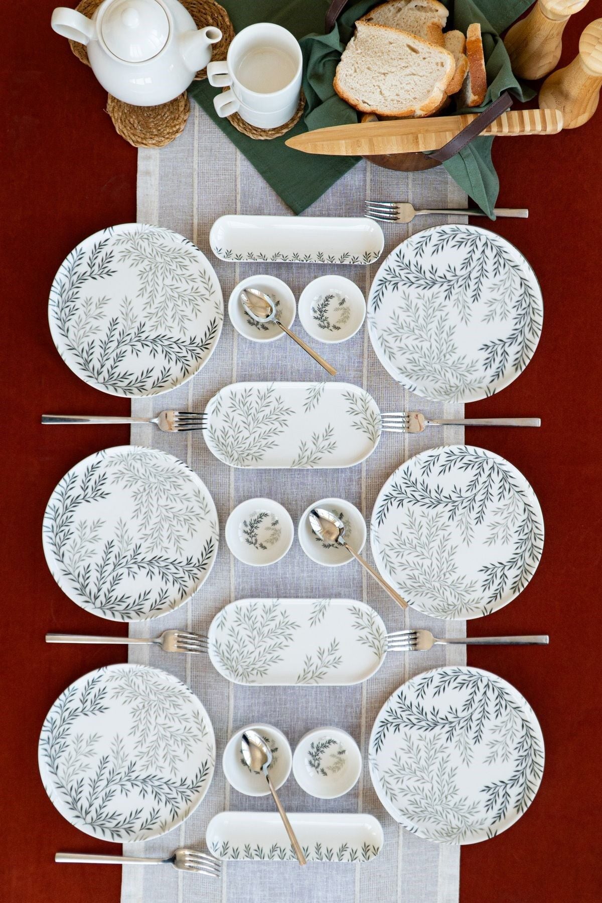 - 6 kişilik geniş kapasitesiyle, aile ve arkadaşlarınızla keyifli kahvaltı sofraları kurmanızı sağlar.; - Yüksek kaliteli porselen malzemesi sayesinde uzun ömürlü kullanım sunar ve dayanıklılığı ile ön plana çıkar.; - BPA içermeyen yapısıyla sağlığınızı düşünerek tasarlanmıştır; güvenle kullanabilirsiniz.; - Modern stil sahibi tasarımıyla mutfak dekorunuza şık bir dokunuş ekler.; - Türkiye'de üretilmiş olup yerel kaynaklı üretim avantajını yansıtır.; - Yuvarlak şekliyle klasik ve zamansız bir görünüm sergilerken, her türlü masa düzenine kolayca uyum sağlar.; - Toplamda 16 parçadan oluşan set, ihtiyacınız olan tüm parçaları tek pakette bulundurarak pratiklik kazandırır.; Ürünümüz 6 parça 21 cm Servis, 6 parça 08 cm Reçellik, 2 adet 21 cm Kayık, 2 adet 20 cm Zeytinlik'ten oluşmaktadır.;