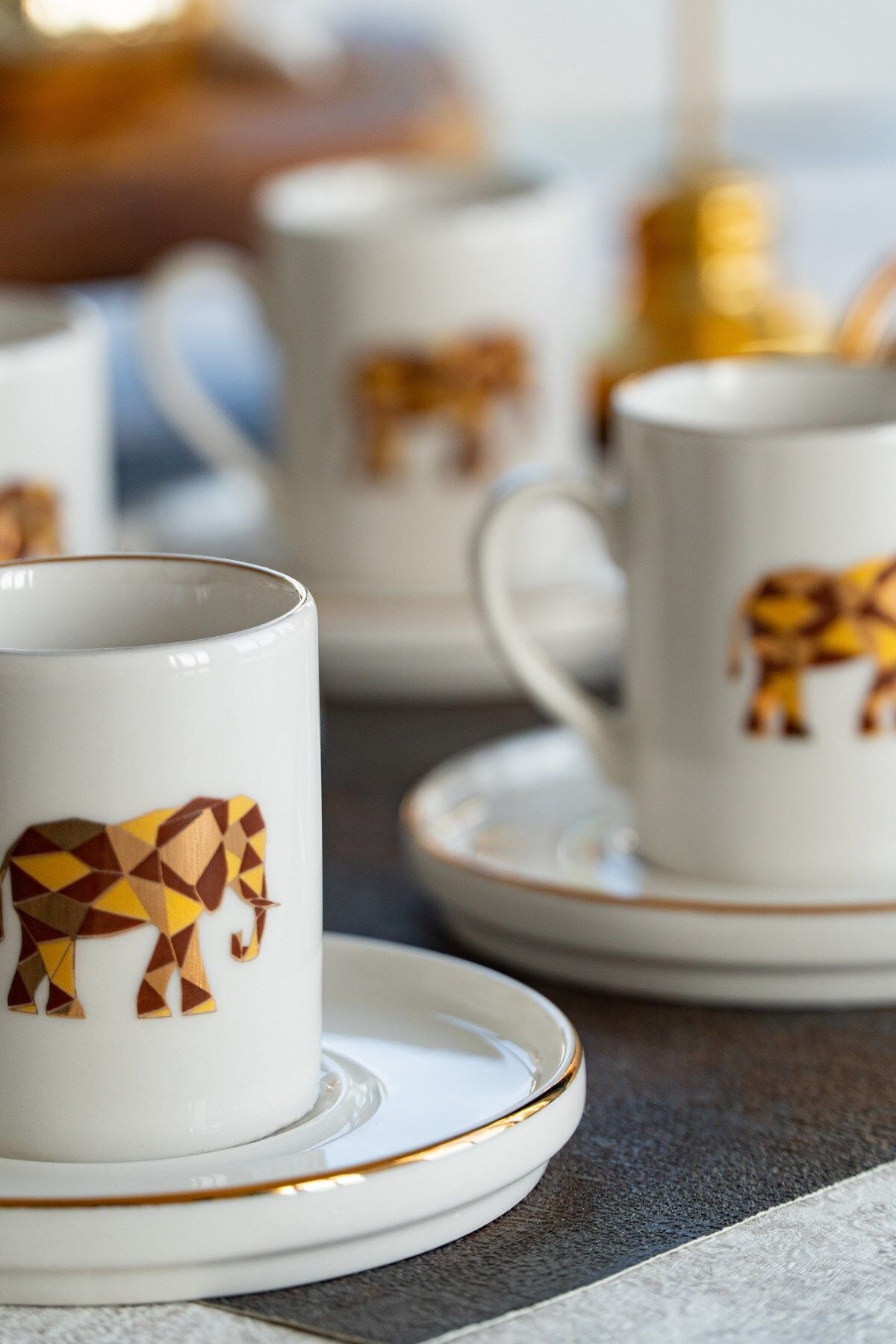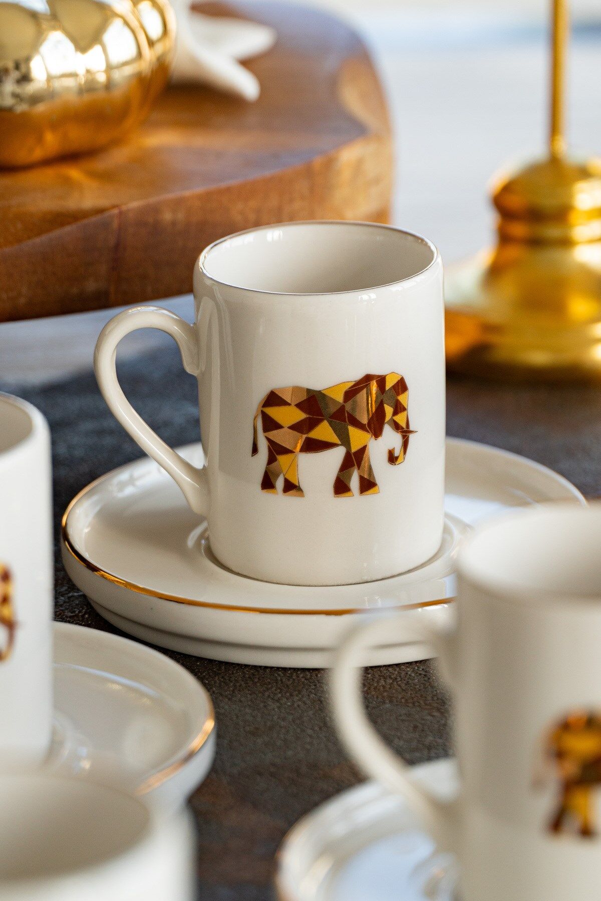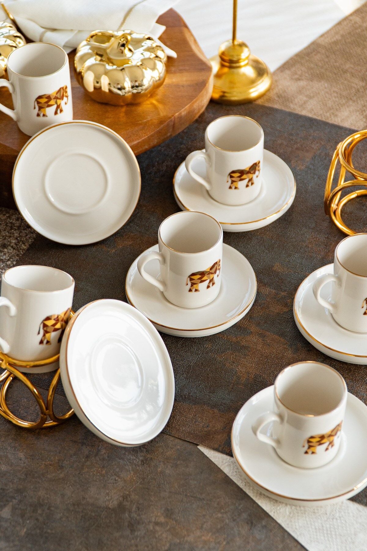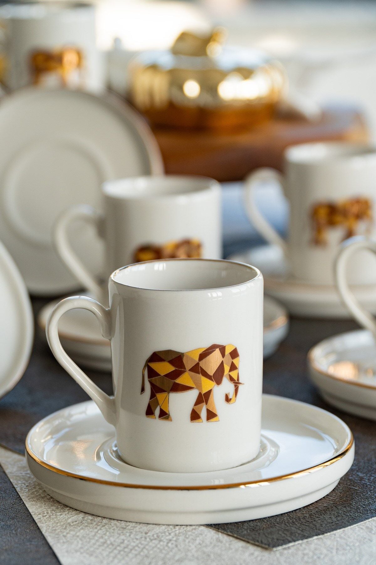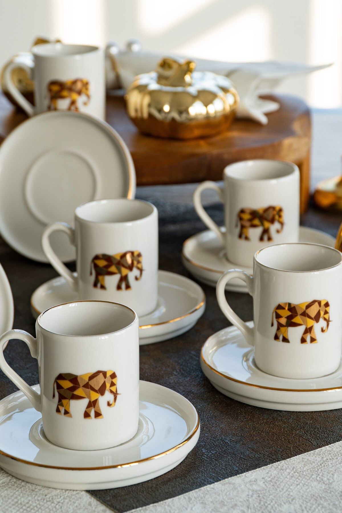 Origami Fil 12 Parça 6 Kişilik Porselen Kahve Fincan Takımı