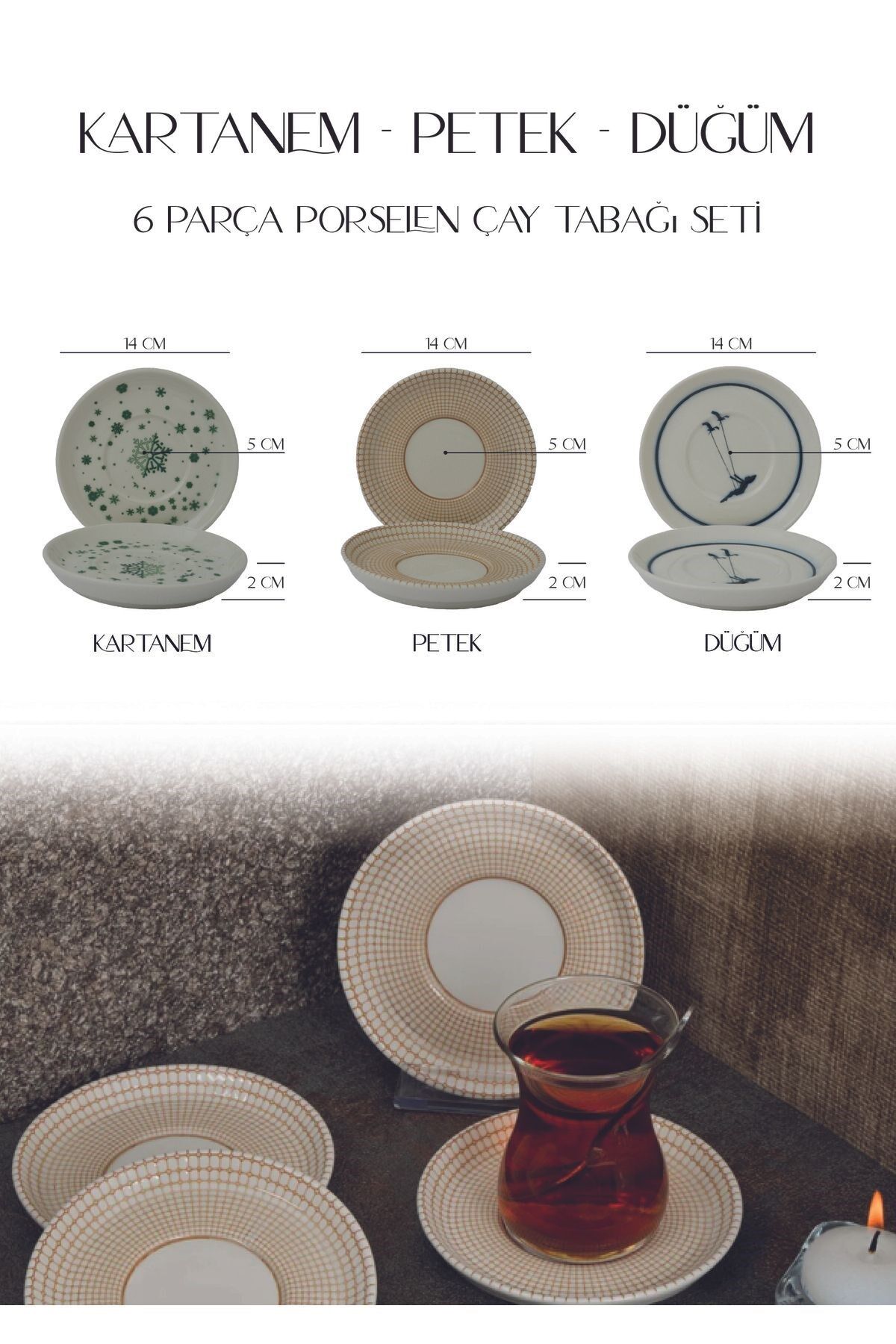 - Modern tasarımıyla dikkat çeken Petek 6'lı Porselen Çay Tabağı Seti, şıklığı ve zarafeti masanıza taşır.; - Her bir parça 10 cm çapında olup, klasik yuvarlak formuyla geleneksel çay keyfinizi yeniden tanımlar.; - Yüksek kaliteli porselen malzemesi sayesinde uzun ömürlü kullanım sunar ve dayanıklılık açısından güven verir.; - BPA içermeyen yapısı ile sağlığınızı düşünerek üretilmiştir; kimyasallardan arındırılmış içeriğiyle her zaman yanınızda.; - 6 parçadan oluşan set, misafirlerinizle paylaşabileceğiniz veya kişisel kullanım için idealdir; her türlü çay ritüeline uyum sağlar.