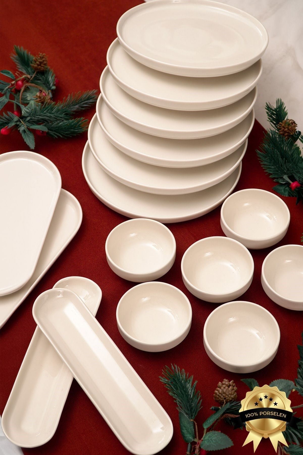 Rüya Kahvaltı Takımı ile Hayalinizdeki Sofralara Kavuşun! 16 parçadan oluşan ve 6 kişilik geniş kapasiteye sahip Rüya Kahvaltı Takımı, kahvaltılarınızı ve misafir ağırlama anlarınızı unutulmaz kılacak. ; Kırık beyaz rengi ve sade tasarımı ile modern mutfaklara mükemmel uyum sağlayan bu set, dayanıklı ve uzun ömürlü porselenden üretilen servis tabakları, zeytinlikler, kayık tabaklar ve reçellikler içerir. ; Porselen Rengi : Kırık Beyaz ; 6 Adet 20 cm Servis Tabağı ; 6 Adet 8 cm Reçellik ; 2 Adet Kayık Tabak (20x13 cm) ; 2 Adet 20 cm Zeytinlik ; Siparişleriniz, strafor ve özel kutular kullanılarak özenle paketlenip gönderilmektedir. ;