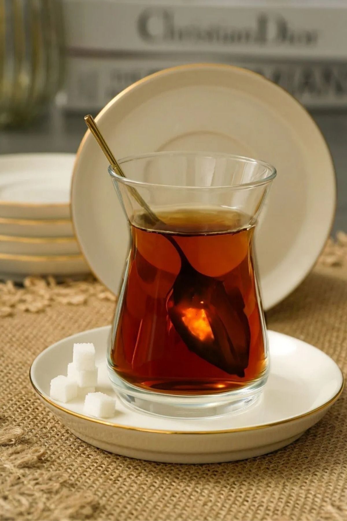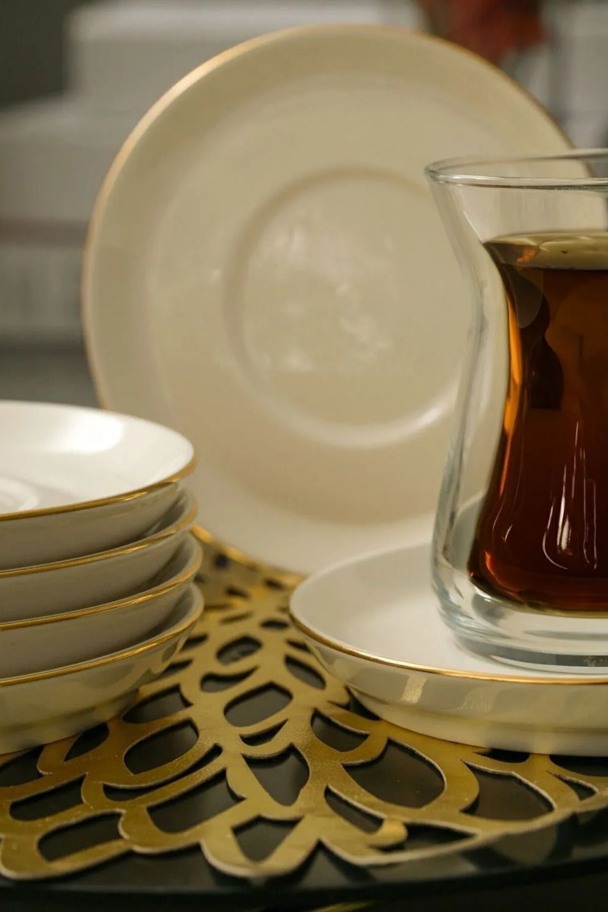 Altın yaldız işlemeleriyle göz alıcı bir estetik sunan bu çay tabağı seti, kırık beyaz rengi ve 12 cm çapıyla her çay anınıza şıklık katar. ; 6 parçadan oluşan set, zarif sunumlarınız için idealdir ve sofralarınıza lüks bir dokunuş ekler. ; Porselen Rengi : Kırık Beyaz ; Bardak oturtma çapı : 6 cm ; 6 Adet 12 cm Çay Tabağı ; Siparişleriniz, strafor ve özel kutular kullanılarak özenle paketlenip gönderilmektedir. ;